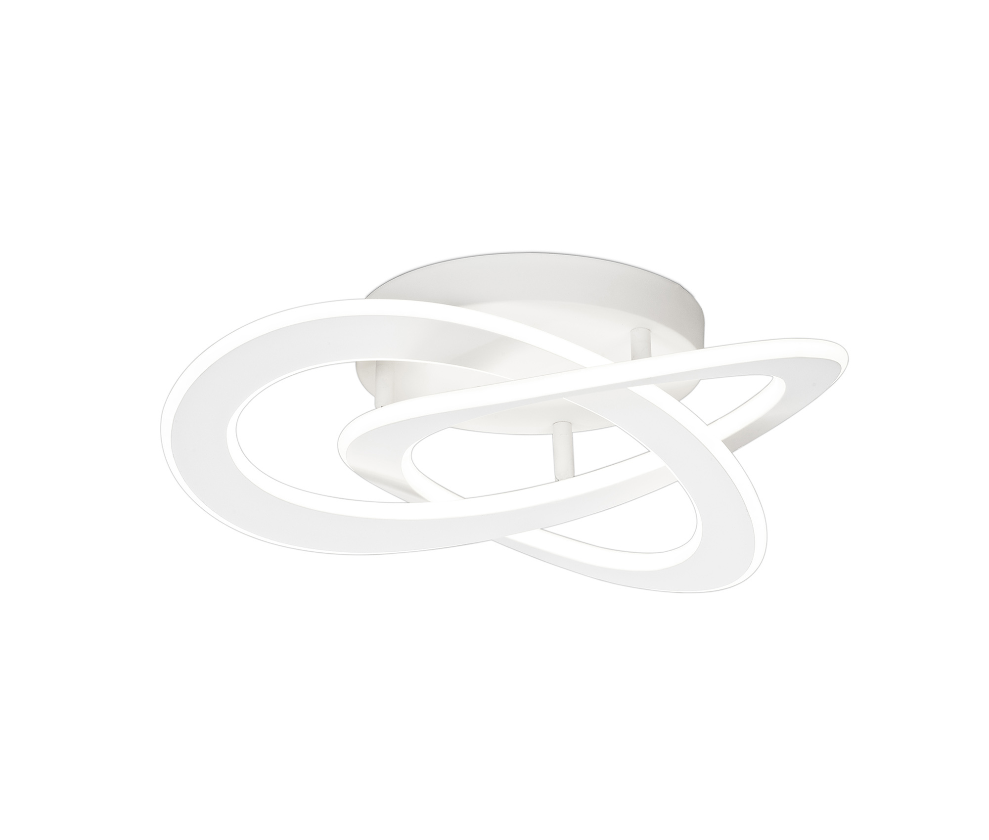 The Saturn range derives its name from the visual concept of its unique design. White metal rings are looped together imitating the distant view of planetary asteroid belts. Available as either a pendant light or ceiling light each fitting boasts an impressive wattage output providing ample illumination. The view beneath the lights forms a fluid triquetra shape ensuring an intriguing shape from every angled view of the lights.