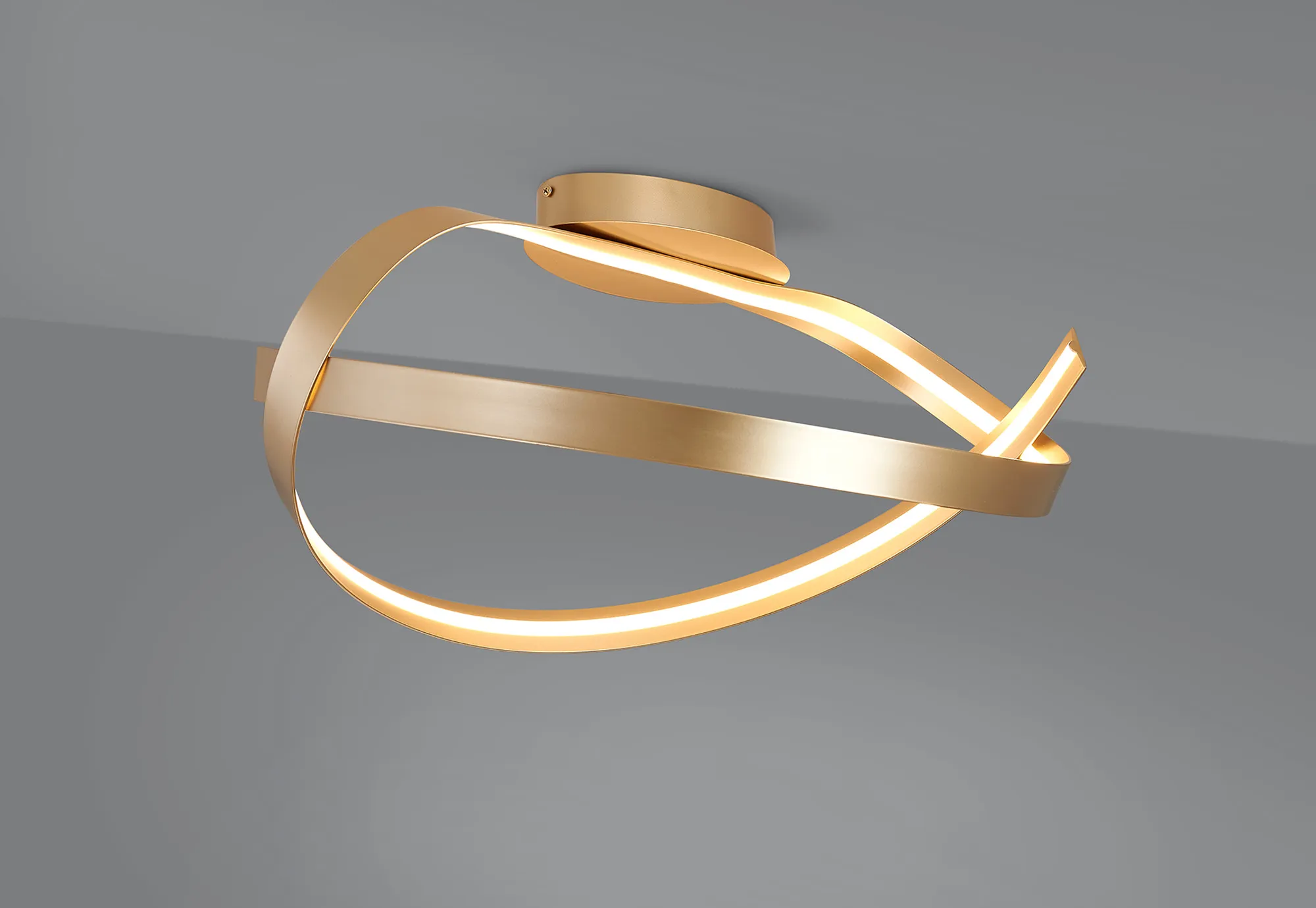 The Aria range beautifully captures the essence of modern elegance while maintaining timeless charm. Its unique design features graceful waves and loops, enhancing not just the aesthetic appeal but also the way light interacts with the space around it. The integrated LEDs provide a warm 3000K ambient glow and are conveniently dimmable.