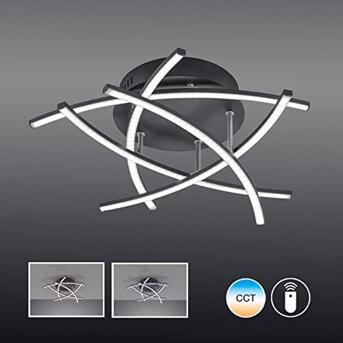Modern LED ceiling light, finished in matt black. complete with remote control to dim and colour shift between 2700-4000k
