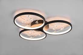 A modern style Matt Black & Gold LED ceiling light with Crystal Glass Drops