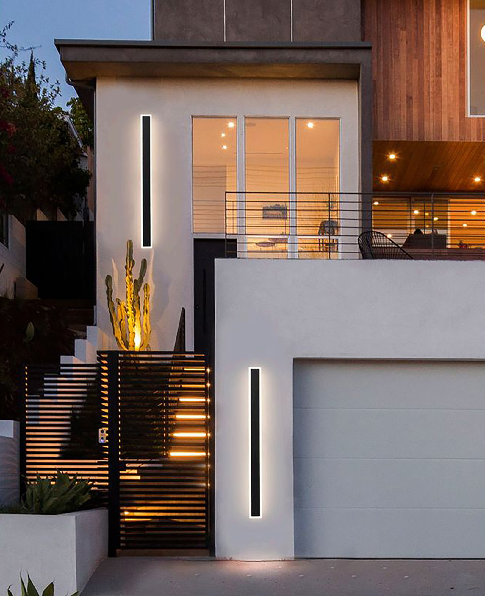 An IP65 rated outdoor LED bar wall lamp, Milton . The discreetly obscured integral LEDs emit a 3000K warm light of harmonious illumination.available in three sizes 60cm,80cm and 1M