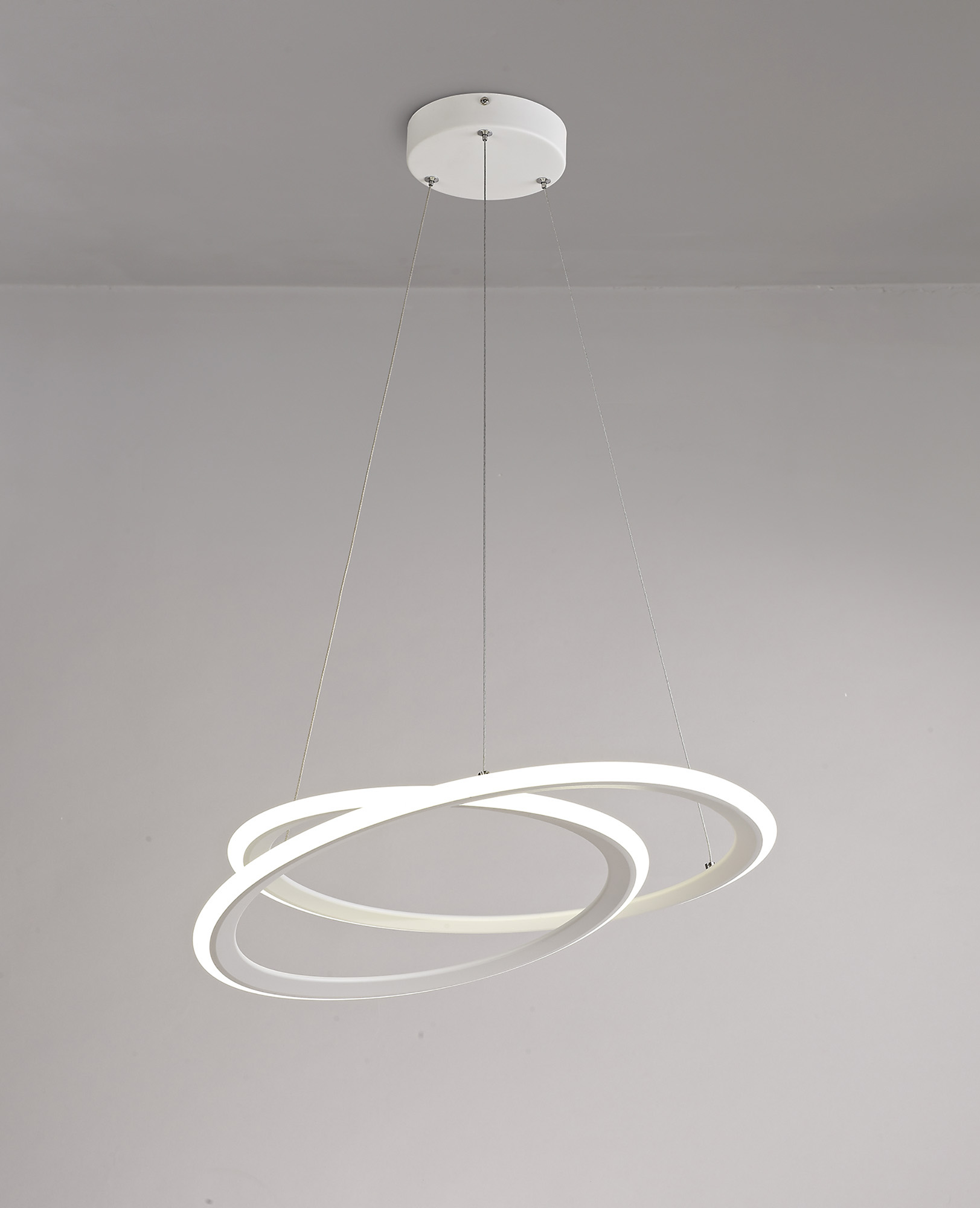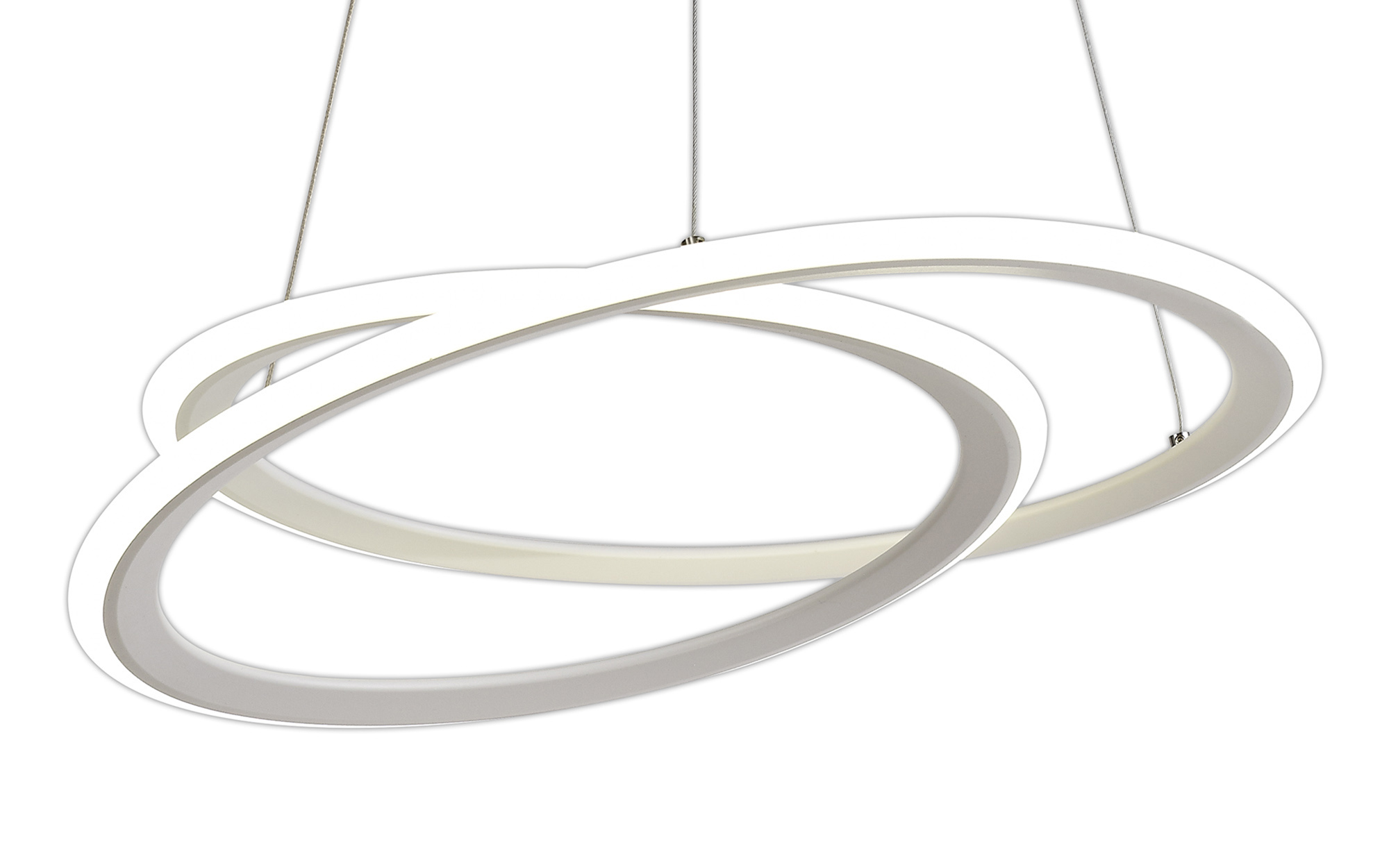 An ultra-modern LED pendant available in two colour finishes, Meda situates two large rings of 4000K light offset and slightly angled away from one another to give the style more depth and dimension without compromising the impact from the impressive integral LED output.