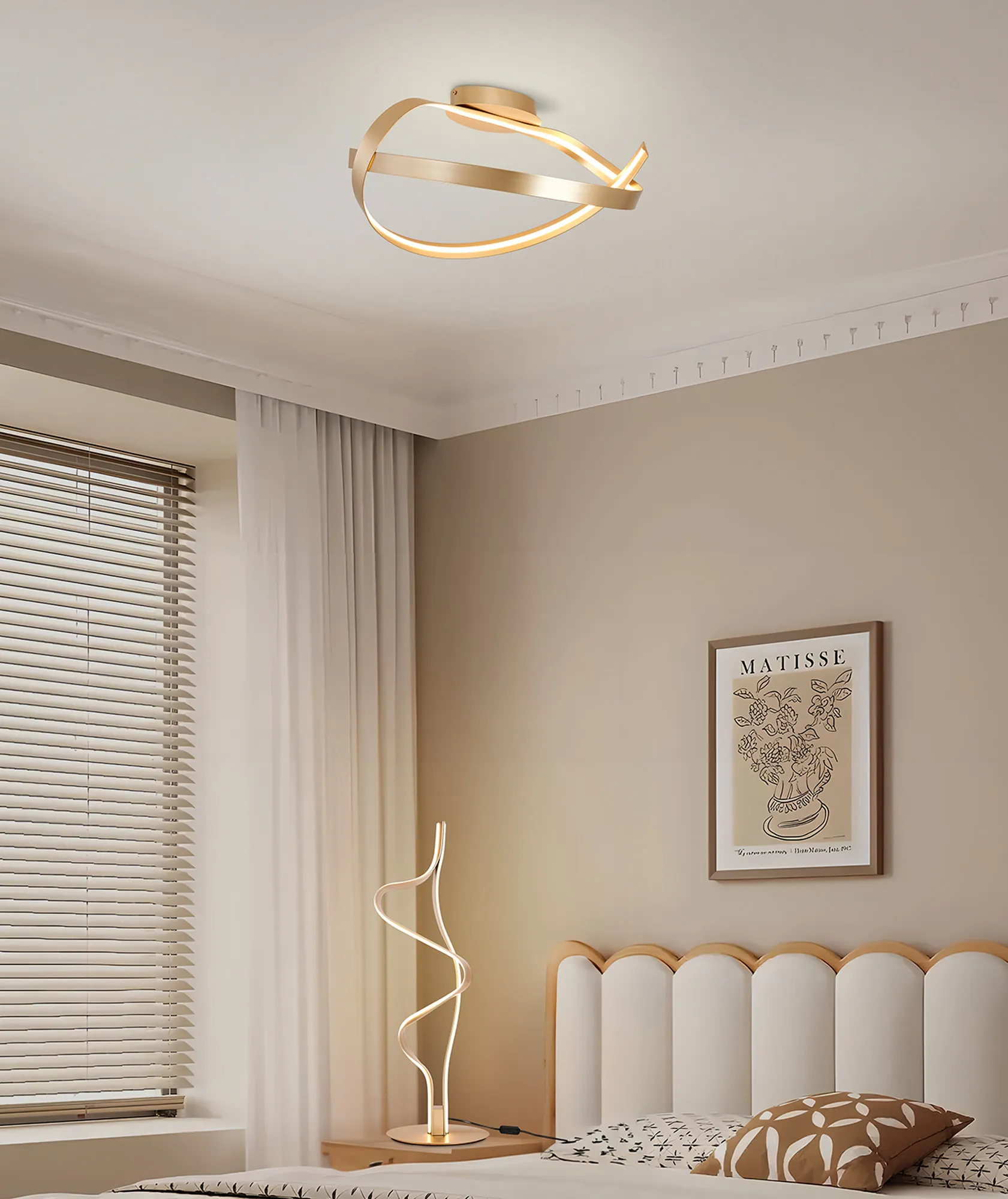 The Aria range beautifully captures the essence of modern elegance while maintaining timeless charm. Its unique design features graceful waves and loops, enhancing not just the aesthetic appeal but also the way light interacts with the space around it. The integrated LEDs provide a warm 3000K ambient glow and are conveniently dimmable.