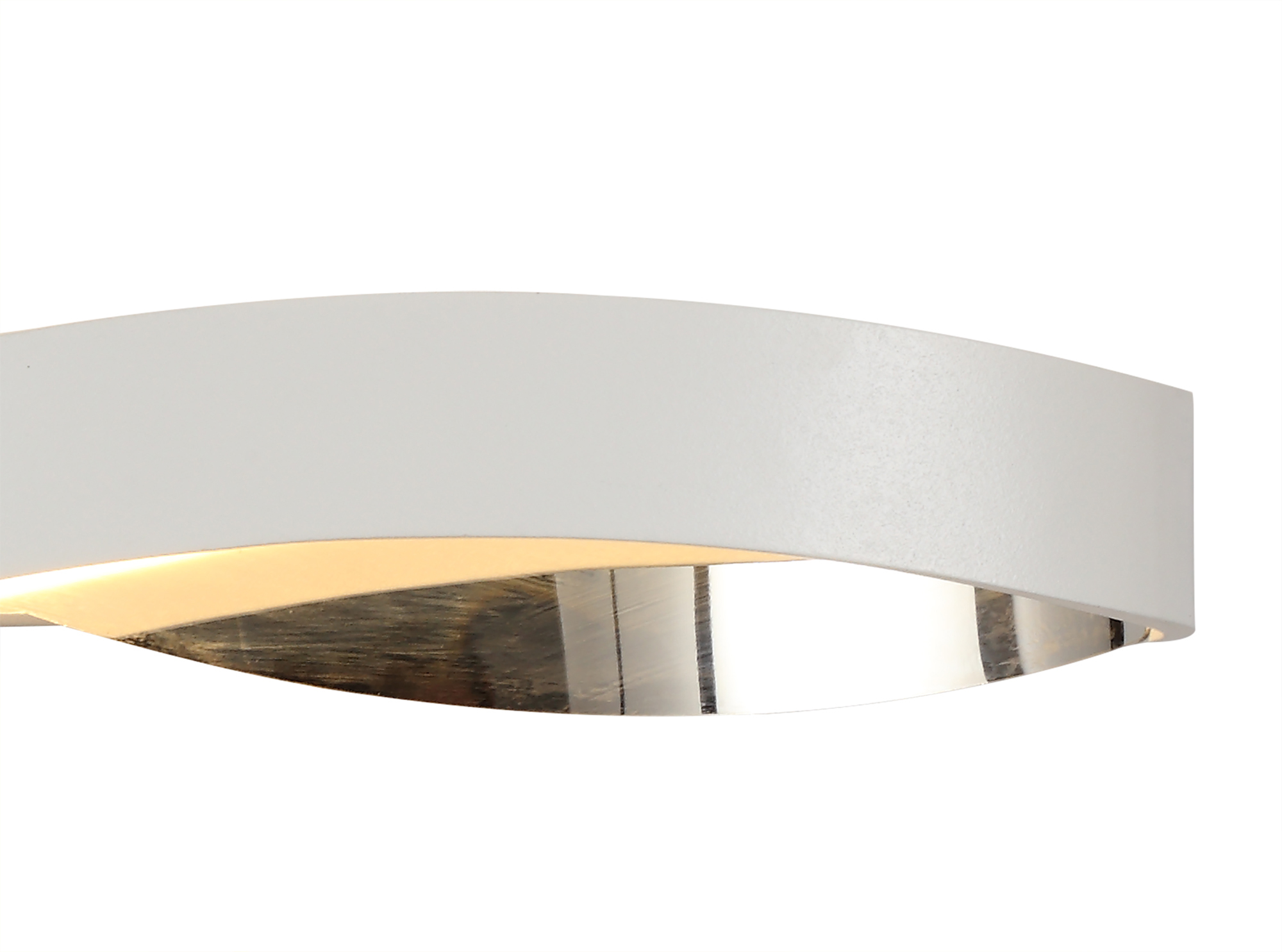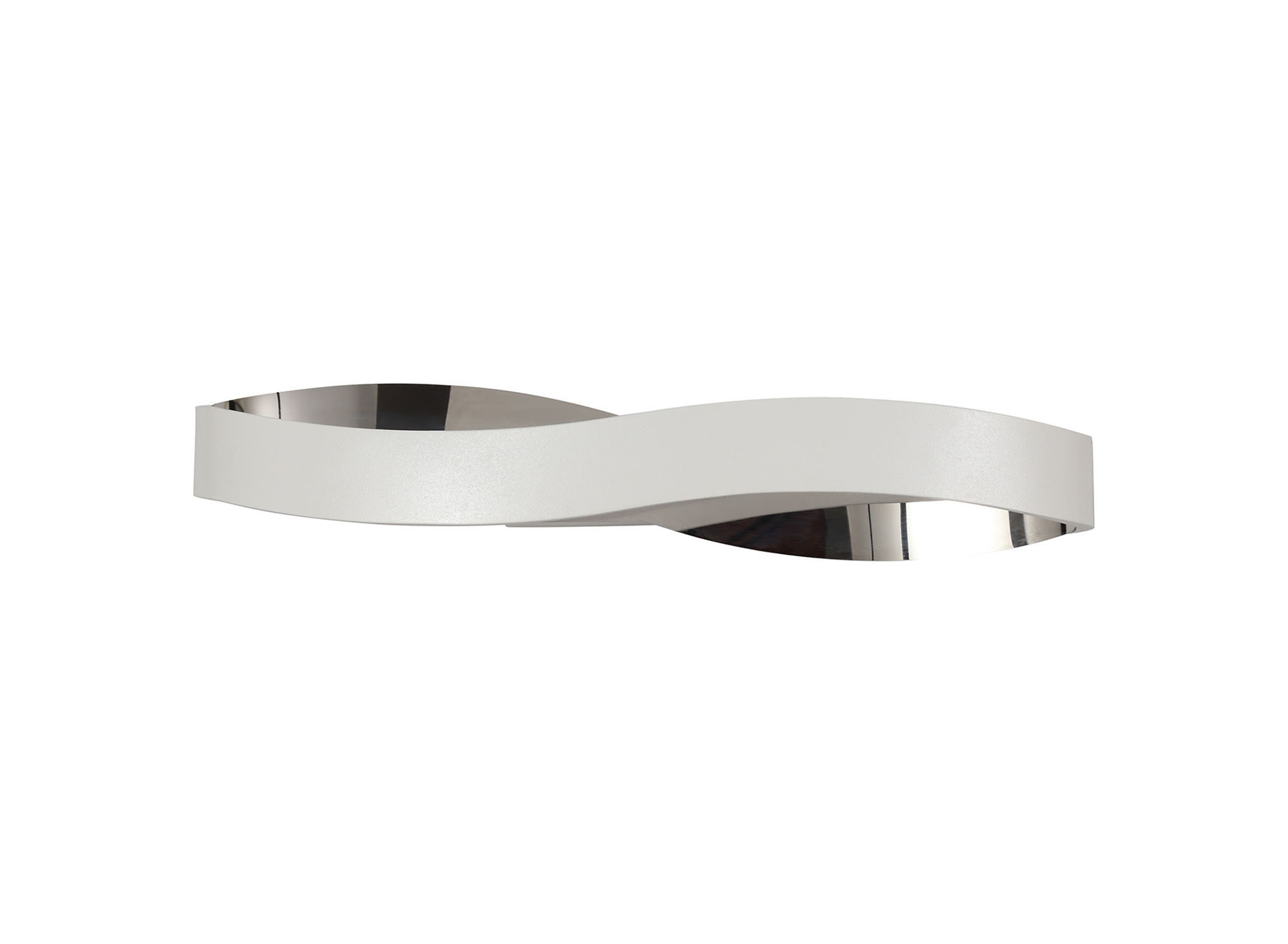 Loop is a looped ribbon, band shape available in sand white with polished chrome finish to form the ultimate modern wall lamp. The integral 3000K LEDs sit within the inside of the protruding frame which disperses the light in two directions through the fixtures open form generating a pleasing ambience.