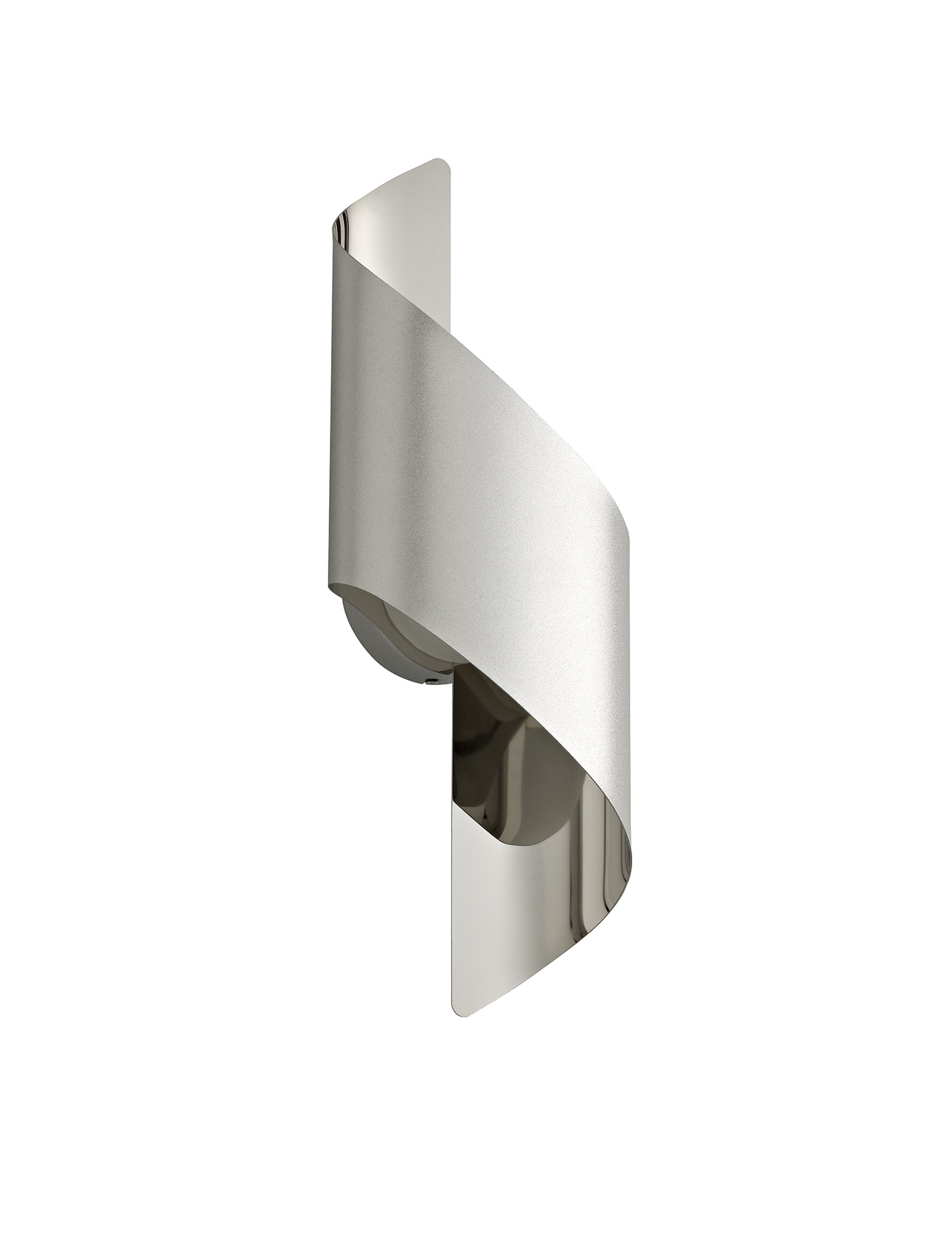 A ultra modern LED Wall light, Angled & fashioned into a spiral shape. finished in silver & chrome