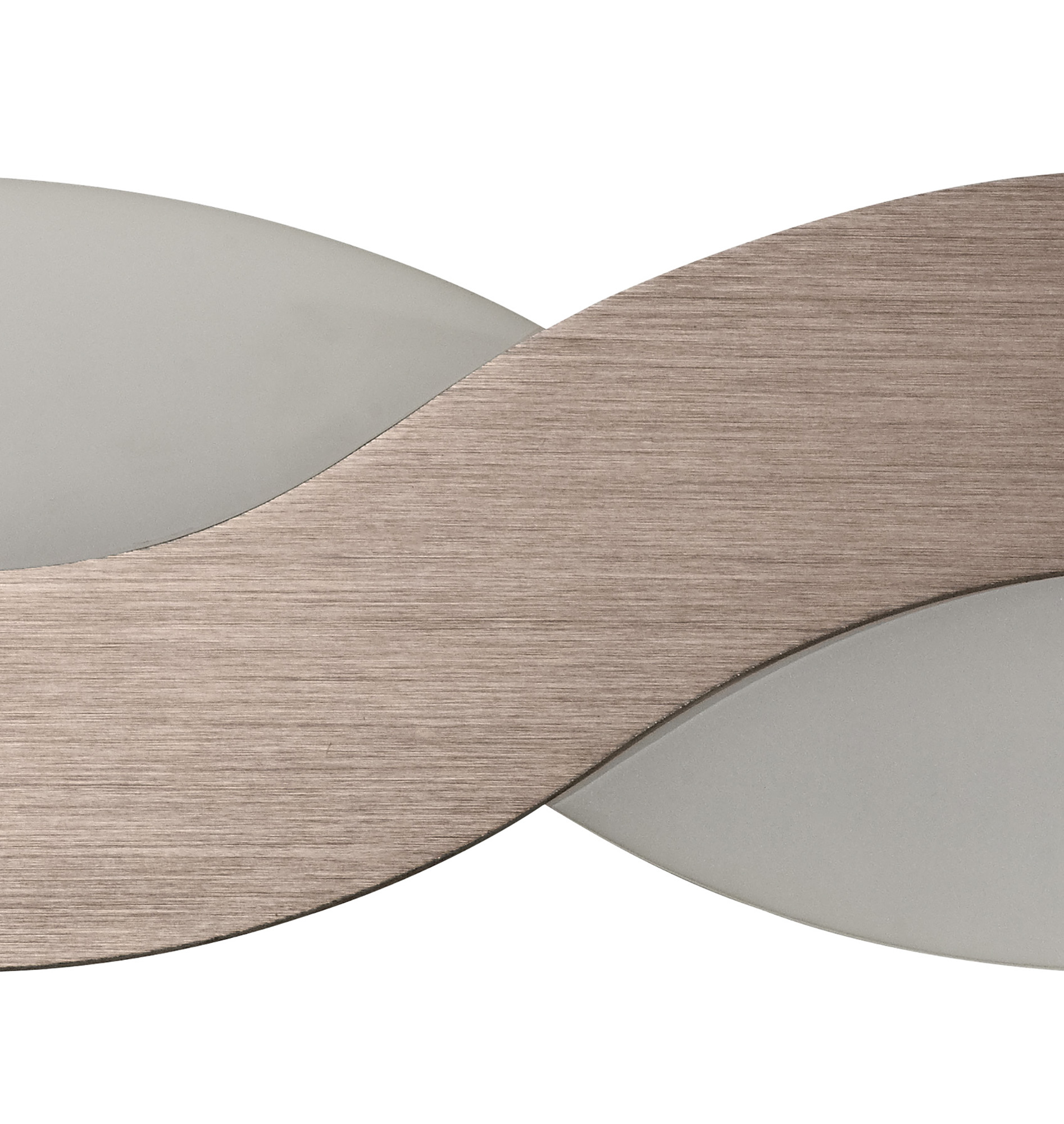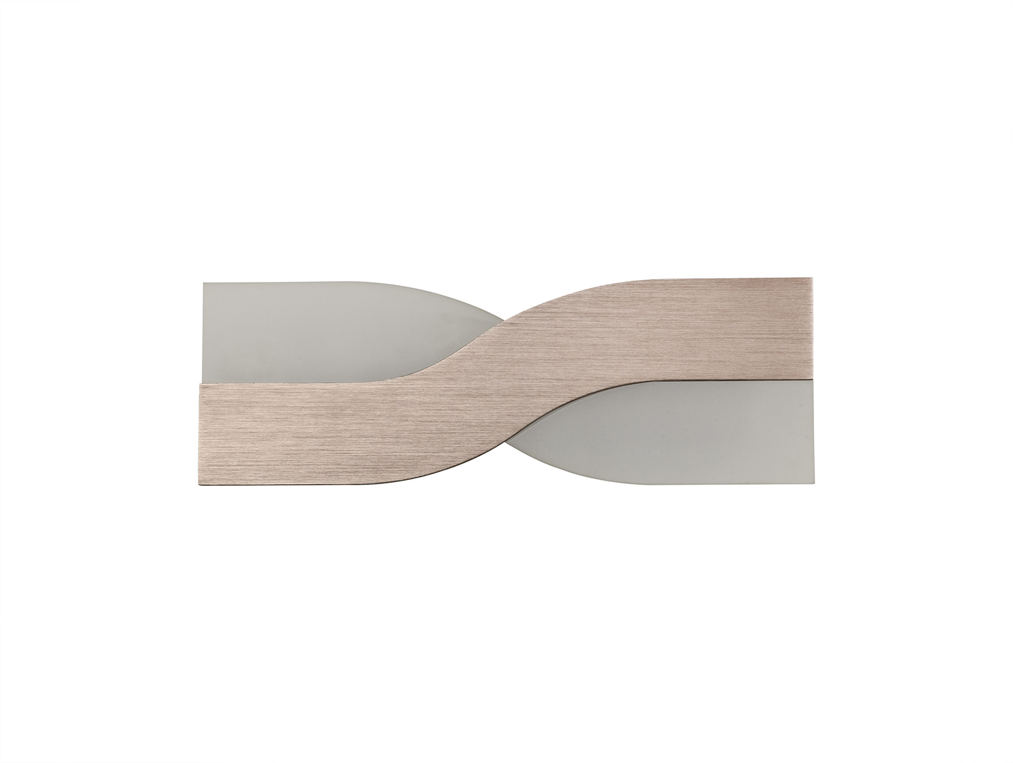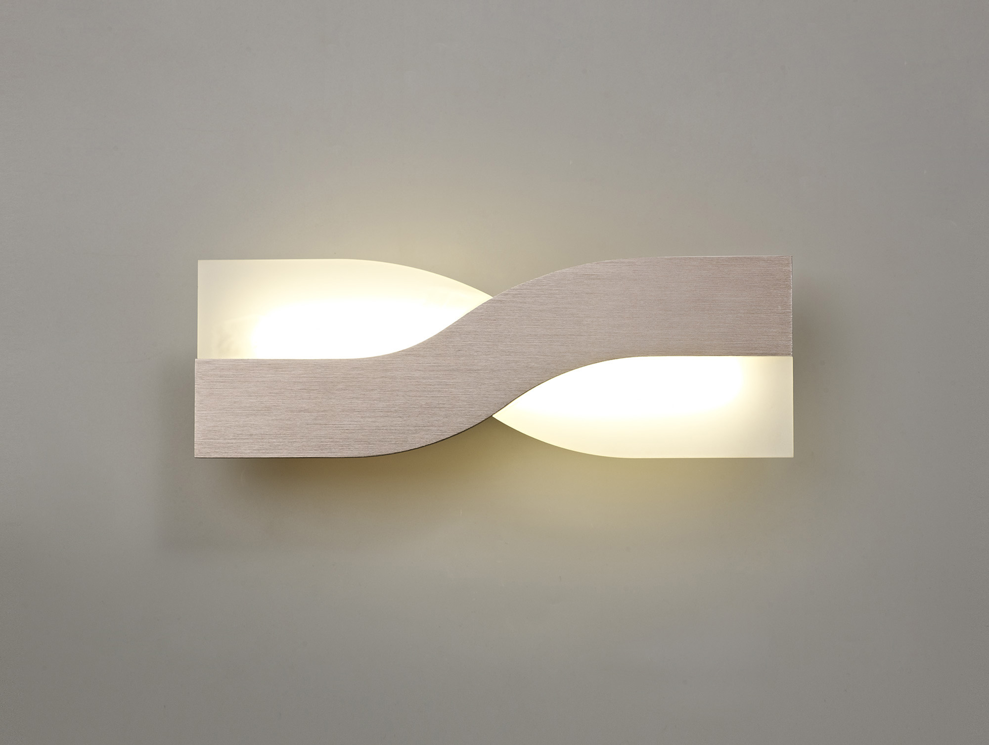 This wall lamp successfully use the metal framework and diffused integral LEDs to not merely provide a wall lamp but an artistic illuminated feature. The 3000K light is filtered through a waved acrylic piece which is setback behind the same form created from the metalwork.