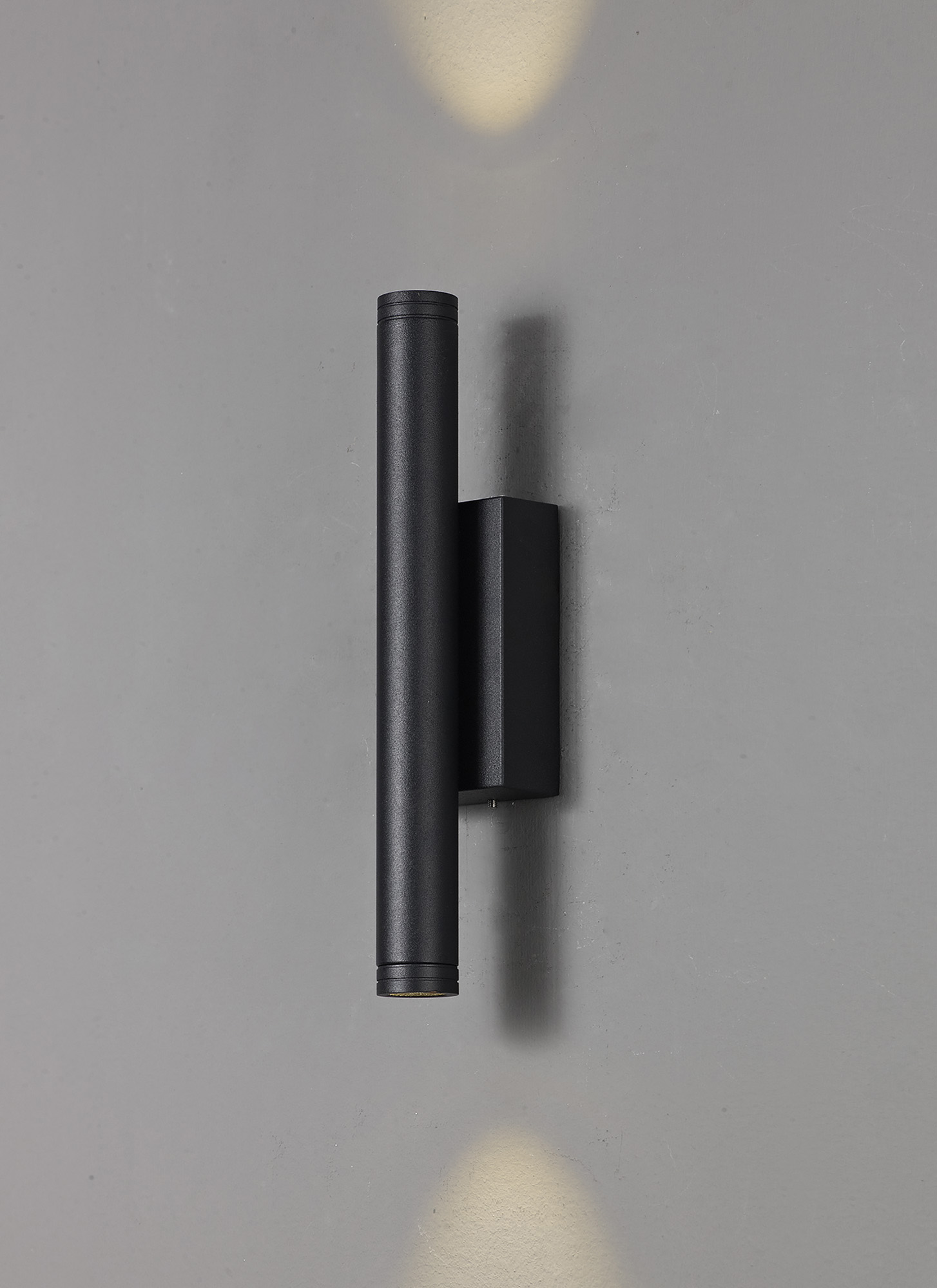 Noah is available in either a dark grey, black or polished chrome colour finish the tubular form of these wall lights is reminiscent of metal piping with two embedded rings at either end.
