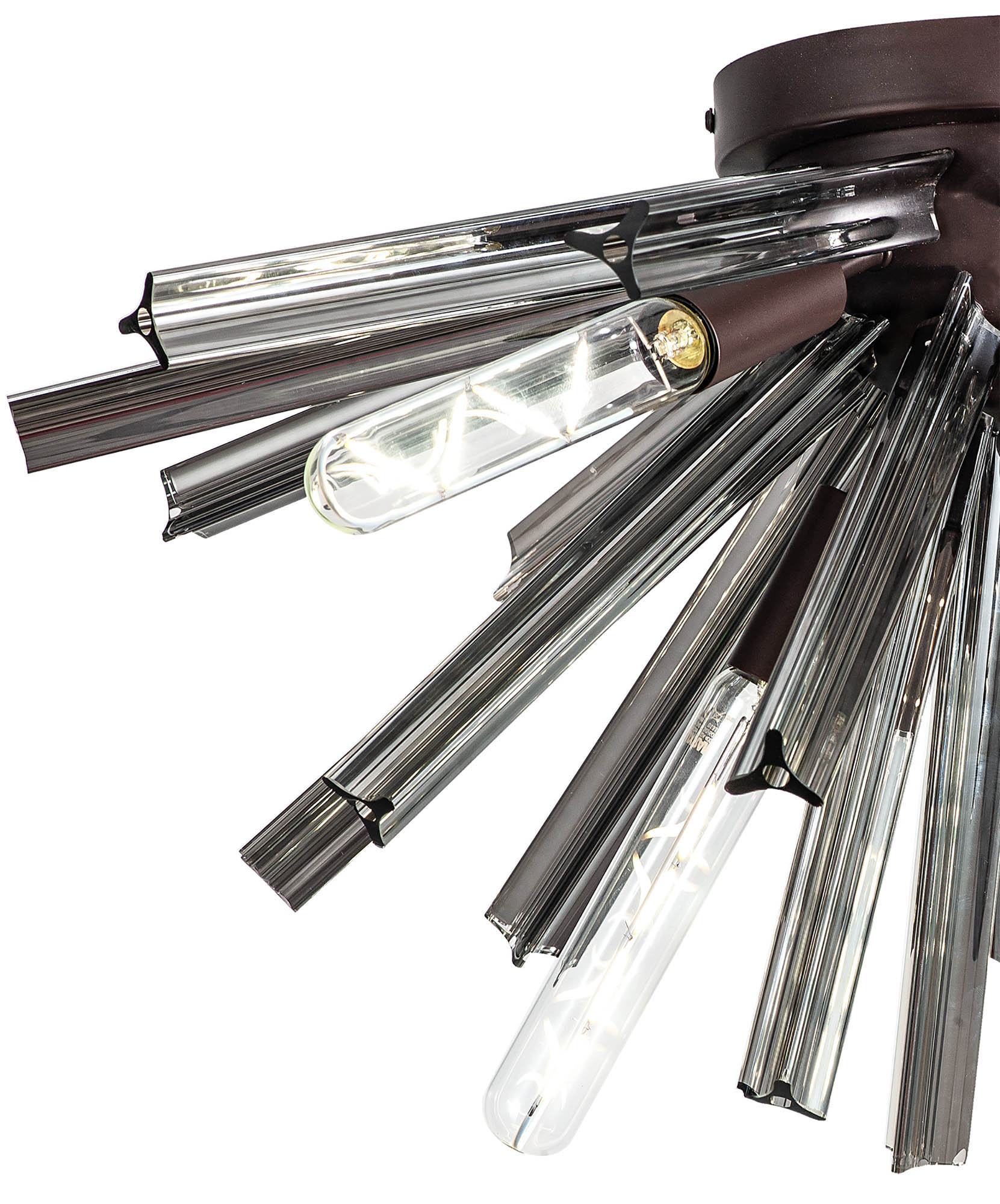 The Cleo collection presents an intriguing glass shape moulded into a three dimensional triquetra. The grooves along each sized glass create an appealing optical effect which is effortlessly enhanced with the use of tubular lamps.