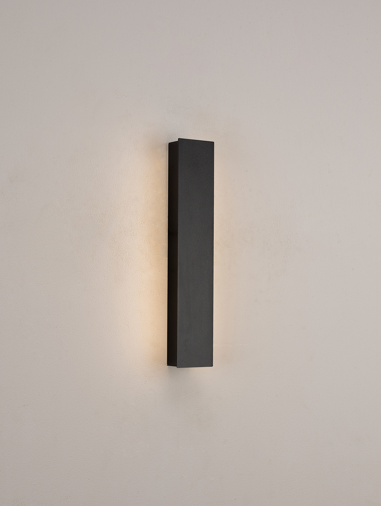 Nelson is an IP65 rated outdoor LED rectangular wall lamp and is available in four colour finishes; black, white, dark grey or dark brown. The back lit integral LEDs emit a 3000K warm light of high powered light. Each colour can be chosen from four sizes with the 1m and 1.4m fixtures producing a dramatic impact.