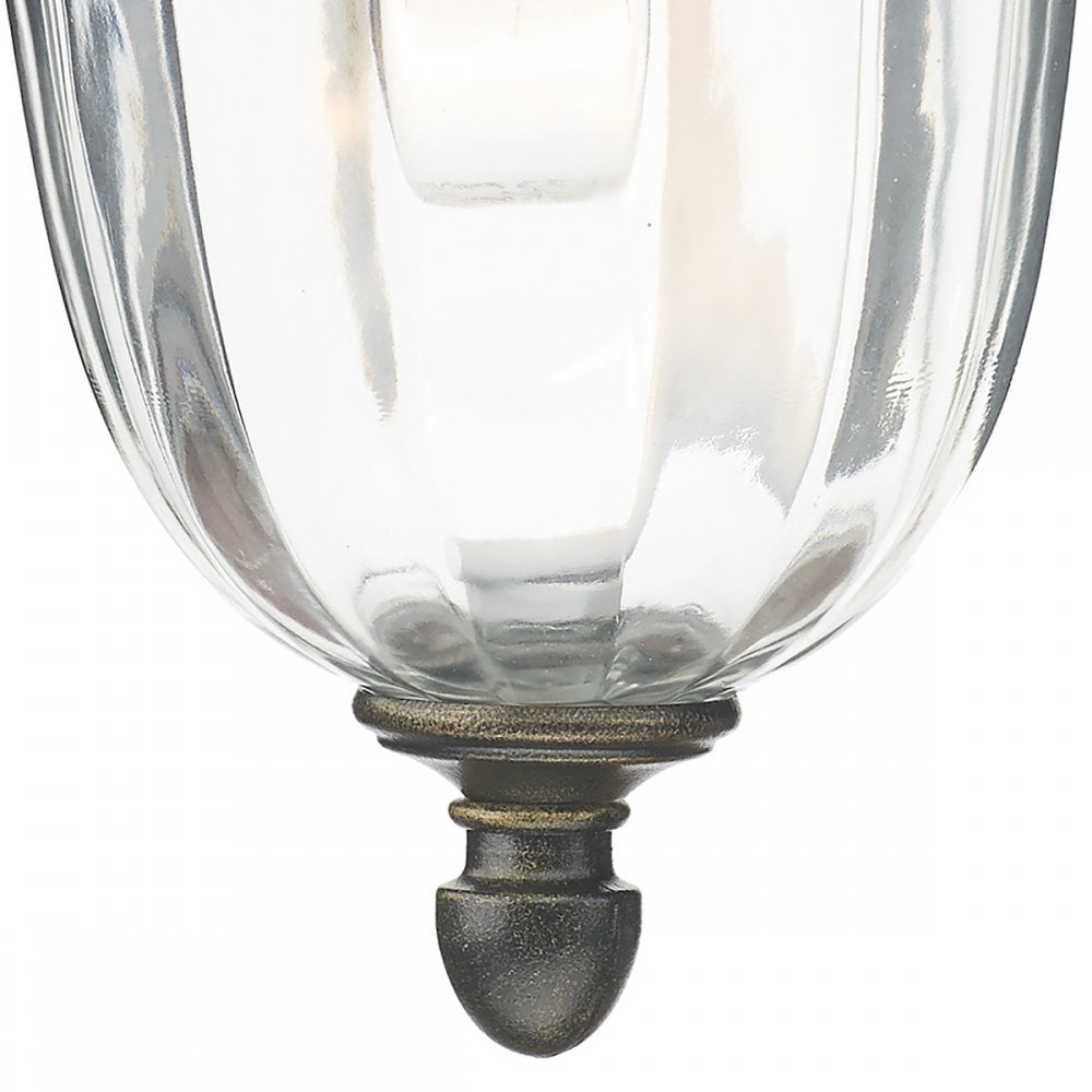 Elegantly finished with a black/gold patina, the ALDGATE 1 Light Wall Light features clear, ribbed-glass and decorative finials. It is IP44 rated and suitable for use in both indoor and outdoor environments.