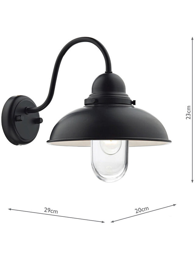 Retro styled outdoor IP44 rated wall light in smooth matt black.