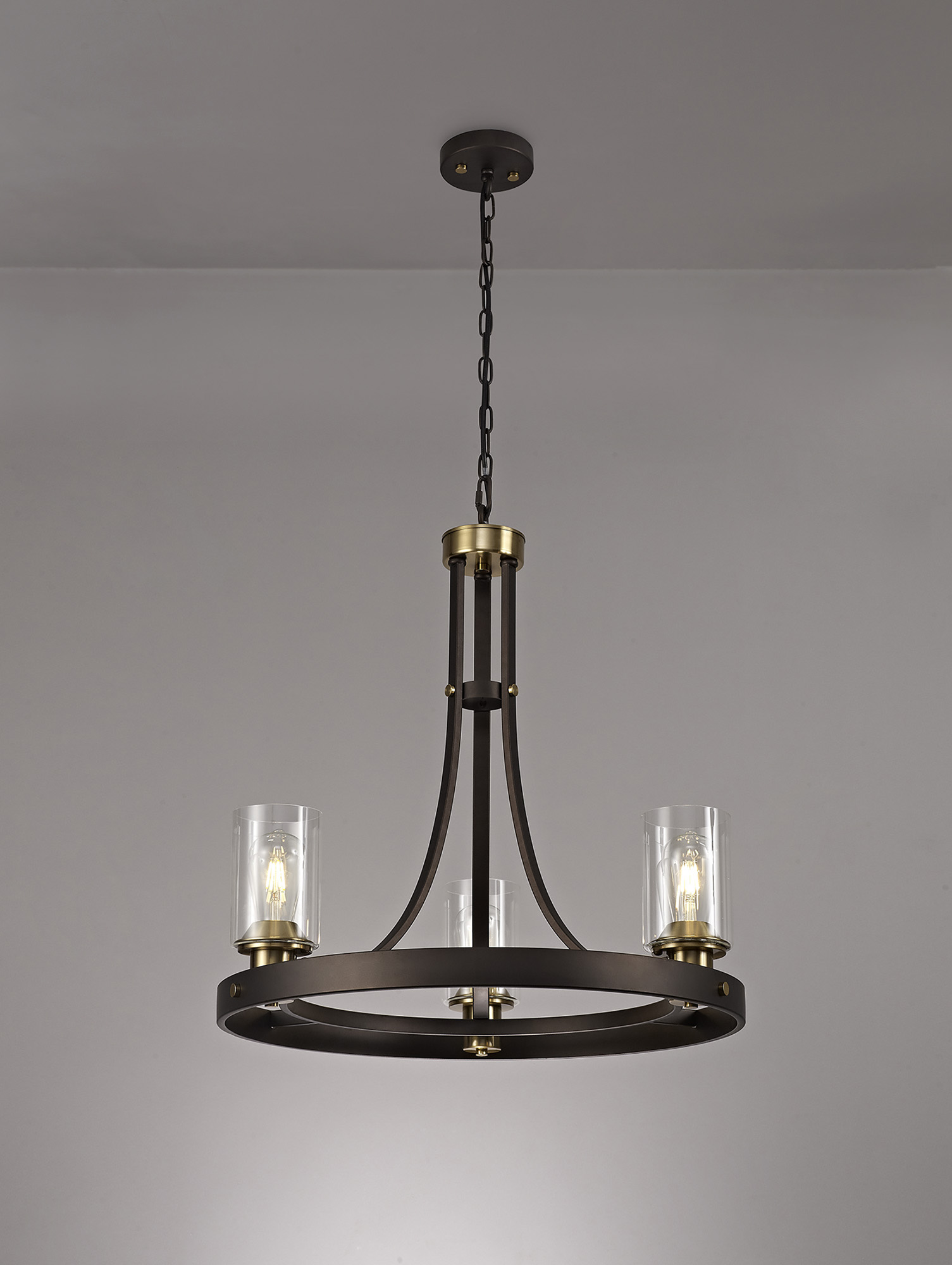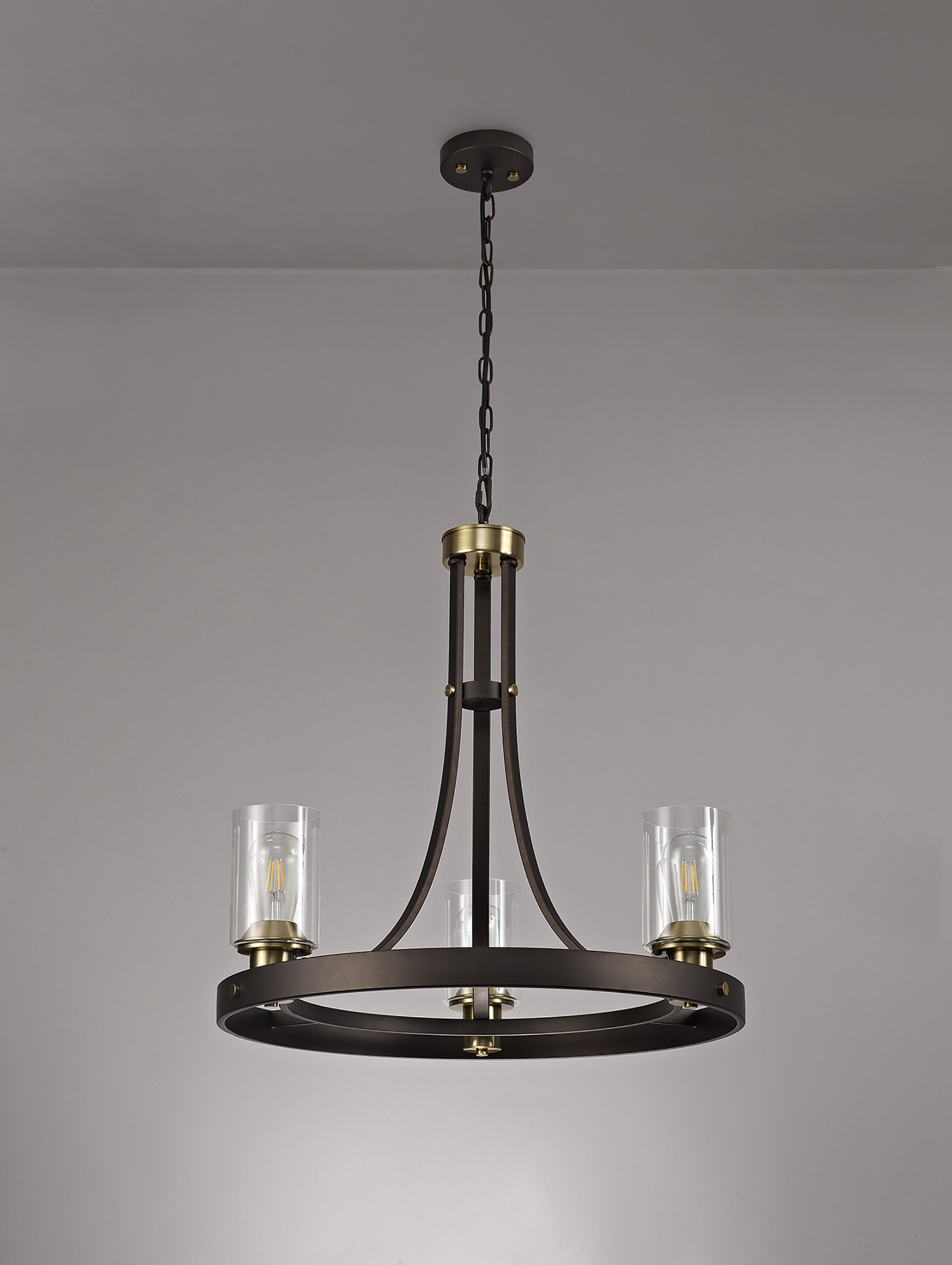 The Medieval notion of illuminating a room by sitting candles along a hanging frame has been re-imagined with modern day materials and lighting to design the Malm collection which will enhance a traditionally styled setting. The dark Brown Oxide and Bronze finish gives the fixtures an antique feel whilst the glass cylinders