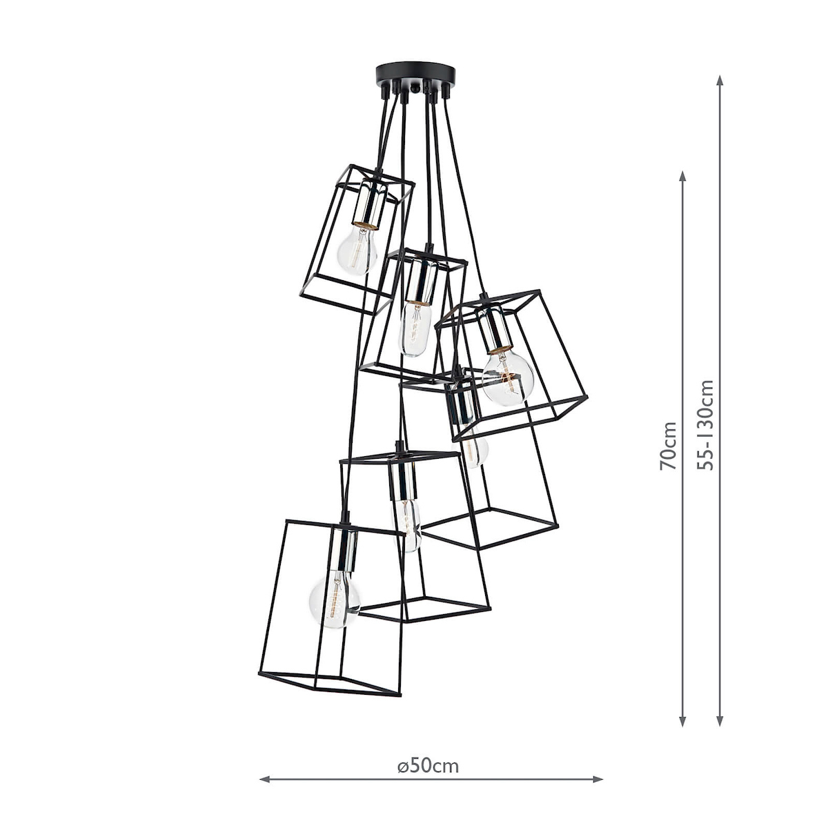 DWOT100650 Lanterns 6 Light Cluster Pendant Black and Chrome