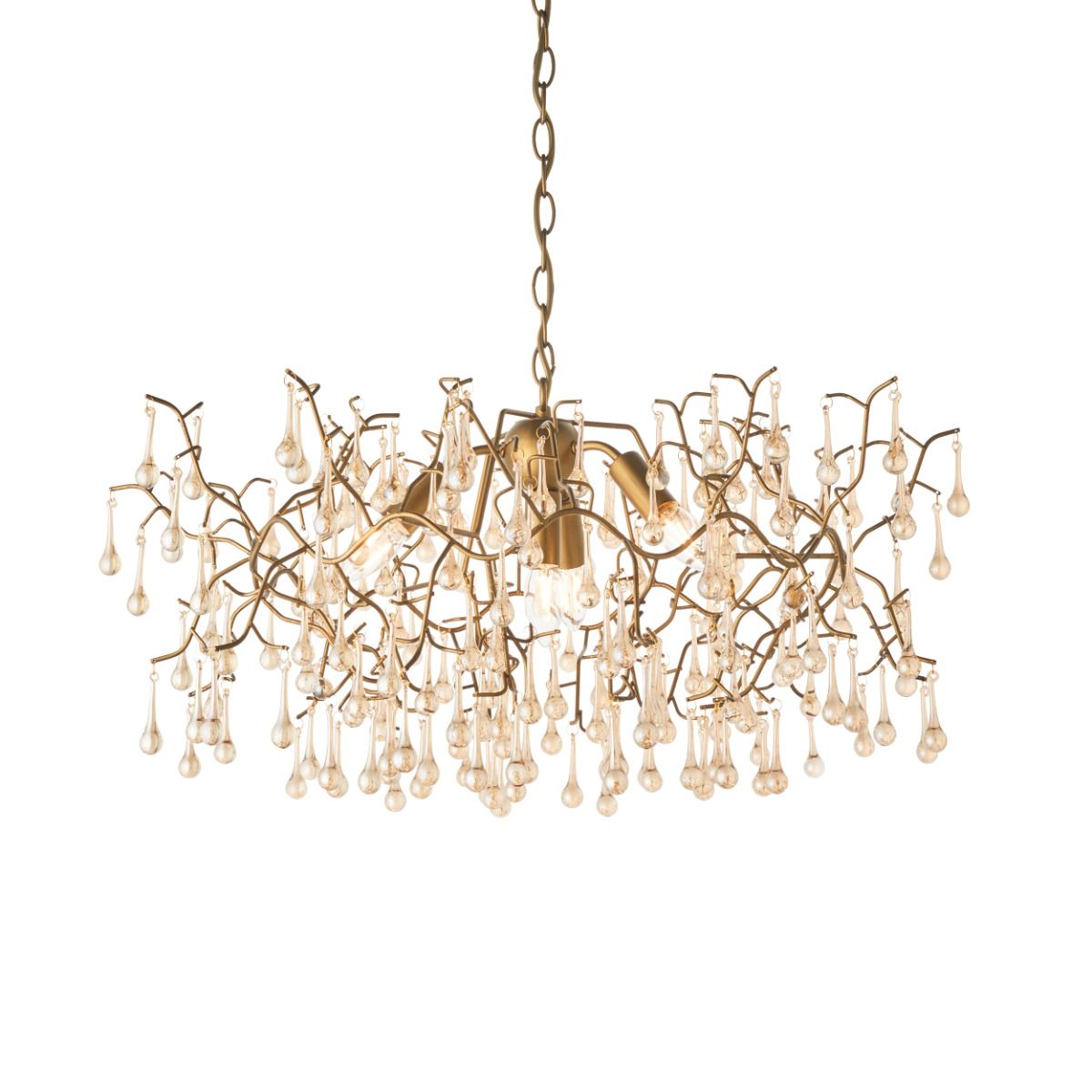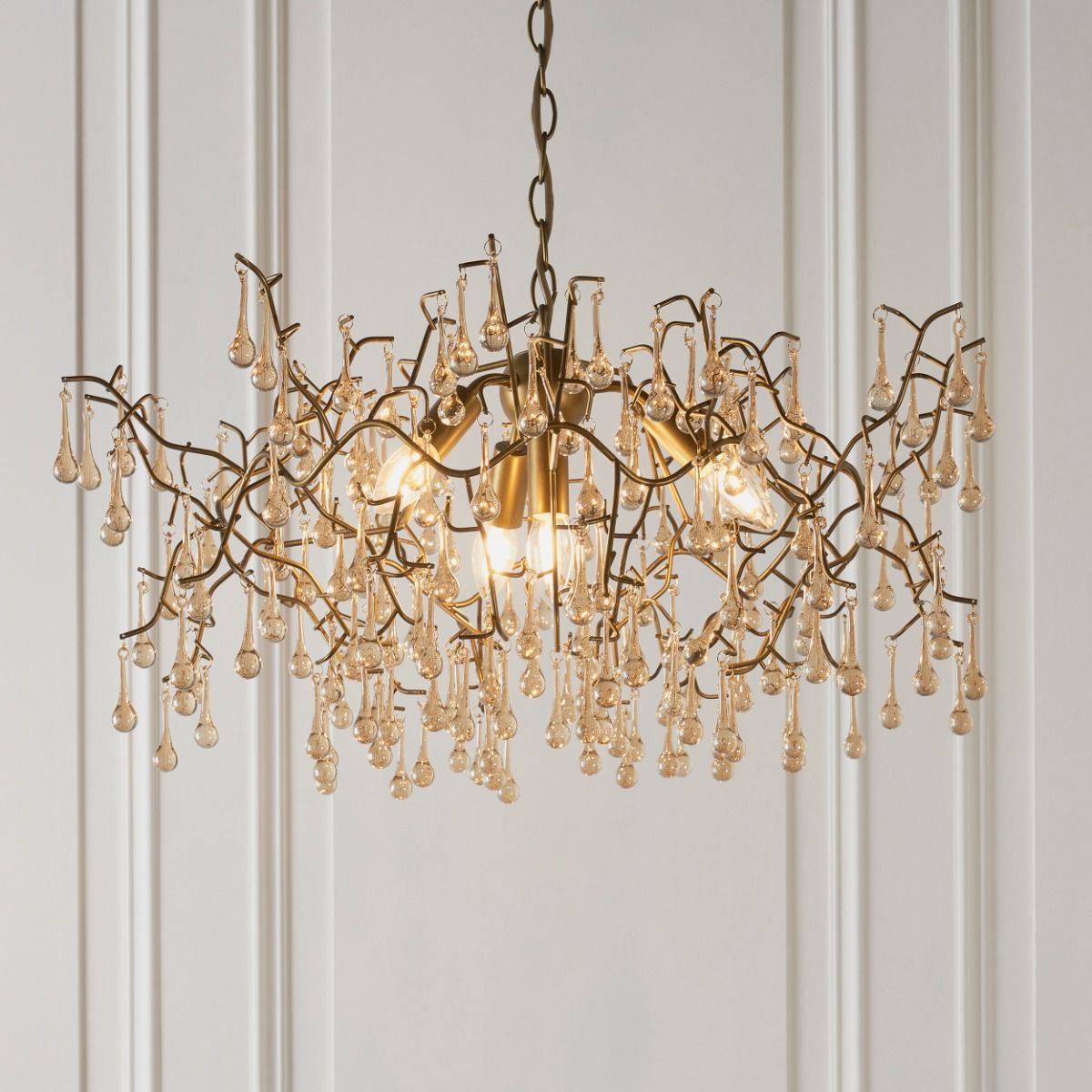 3181675 Willow Aged Brass Chandelier With Glass Droplets