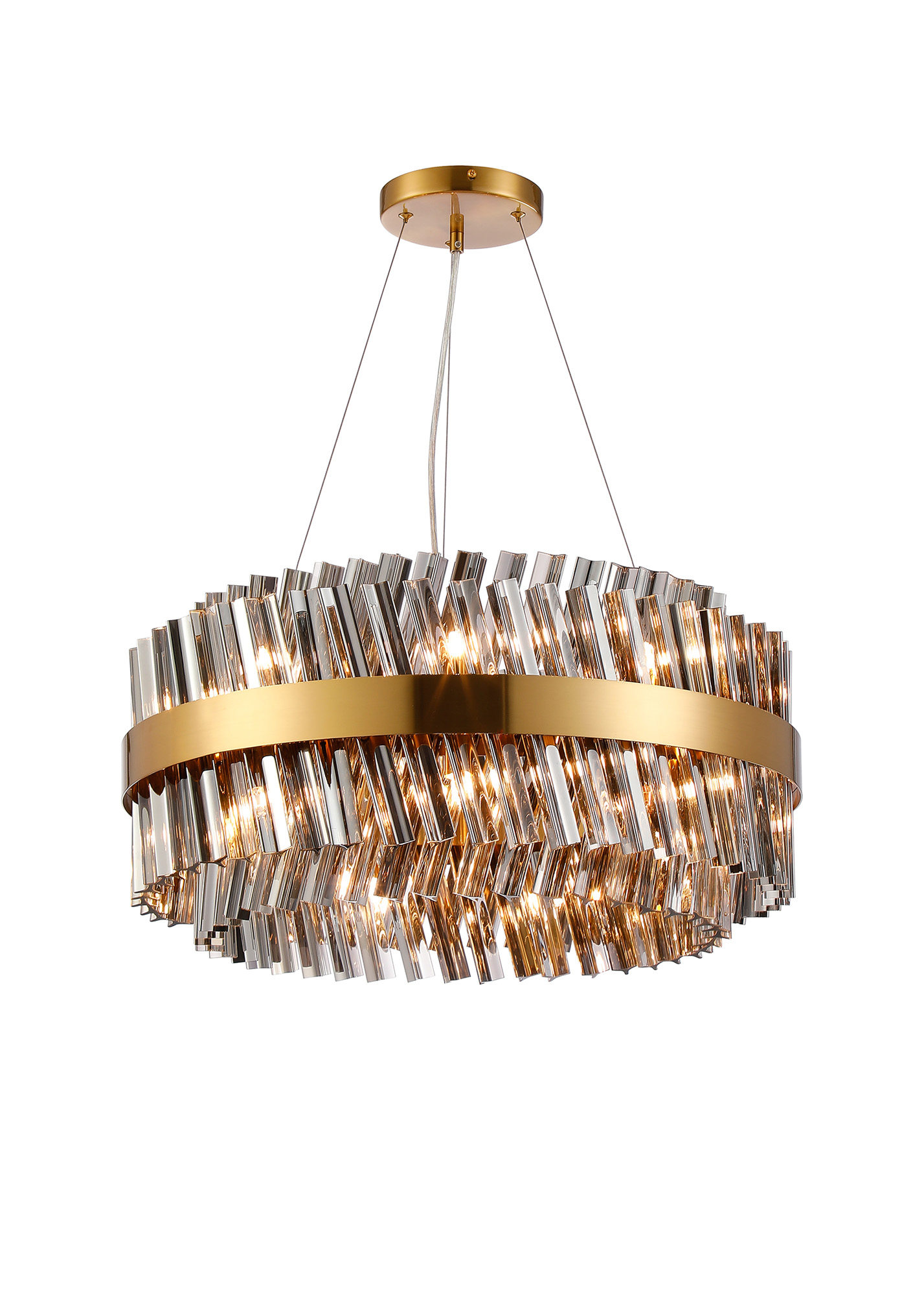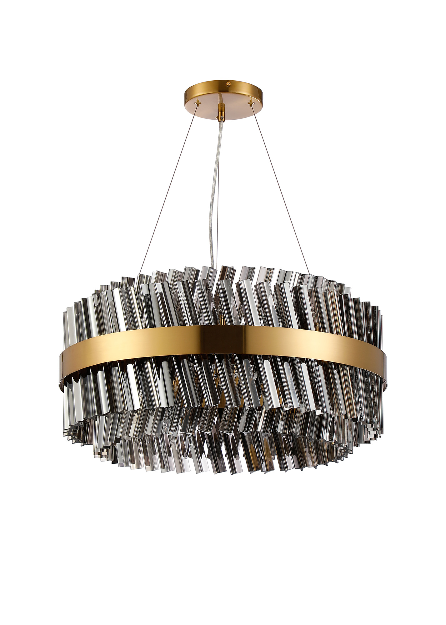 Cali offers a wide variety of frame and glass colour combinations. Of the three frame colours; satin black, polished nickel and brass, there are an equal number of glass to choose from; clear, smoked or amber. One of the most unique selling points of this collection is the dual application of how the mixture of long and short glass are fitted to the lights, giving two visual options.
