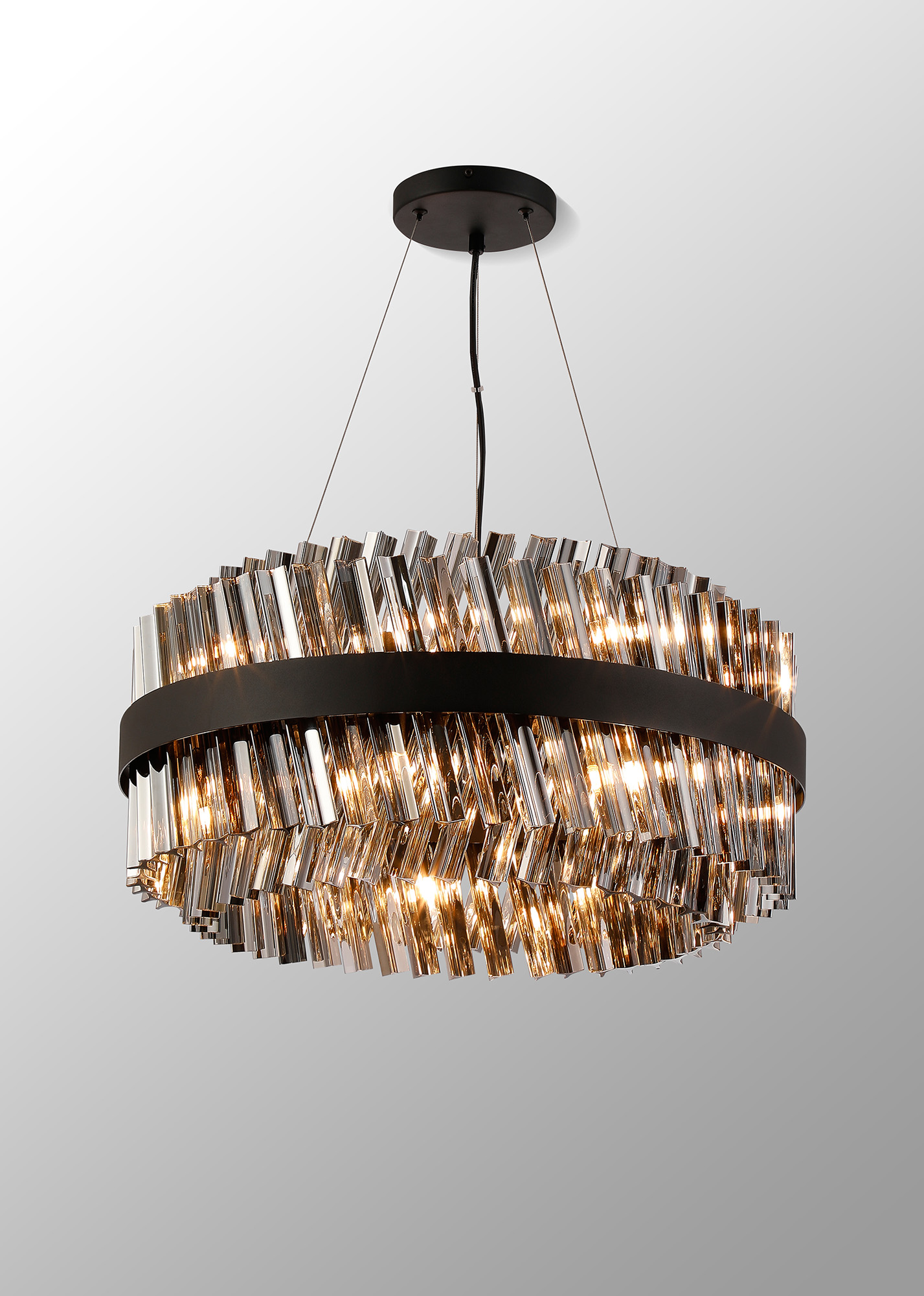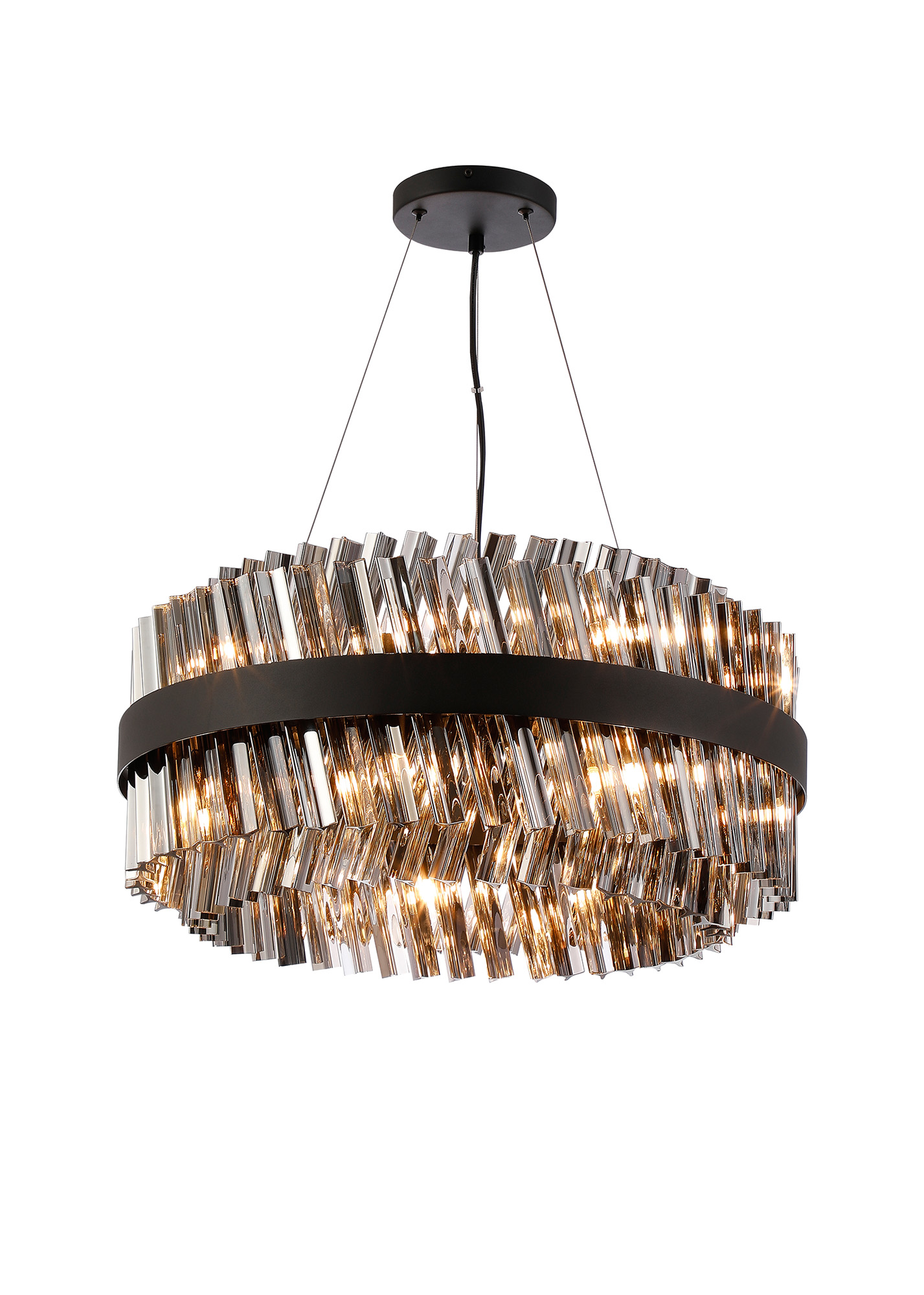 4002596 18 Light Esme Pendant Satin Black/Smoked Glass