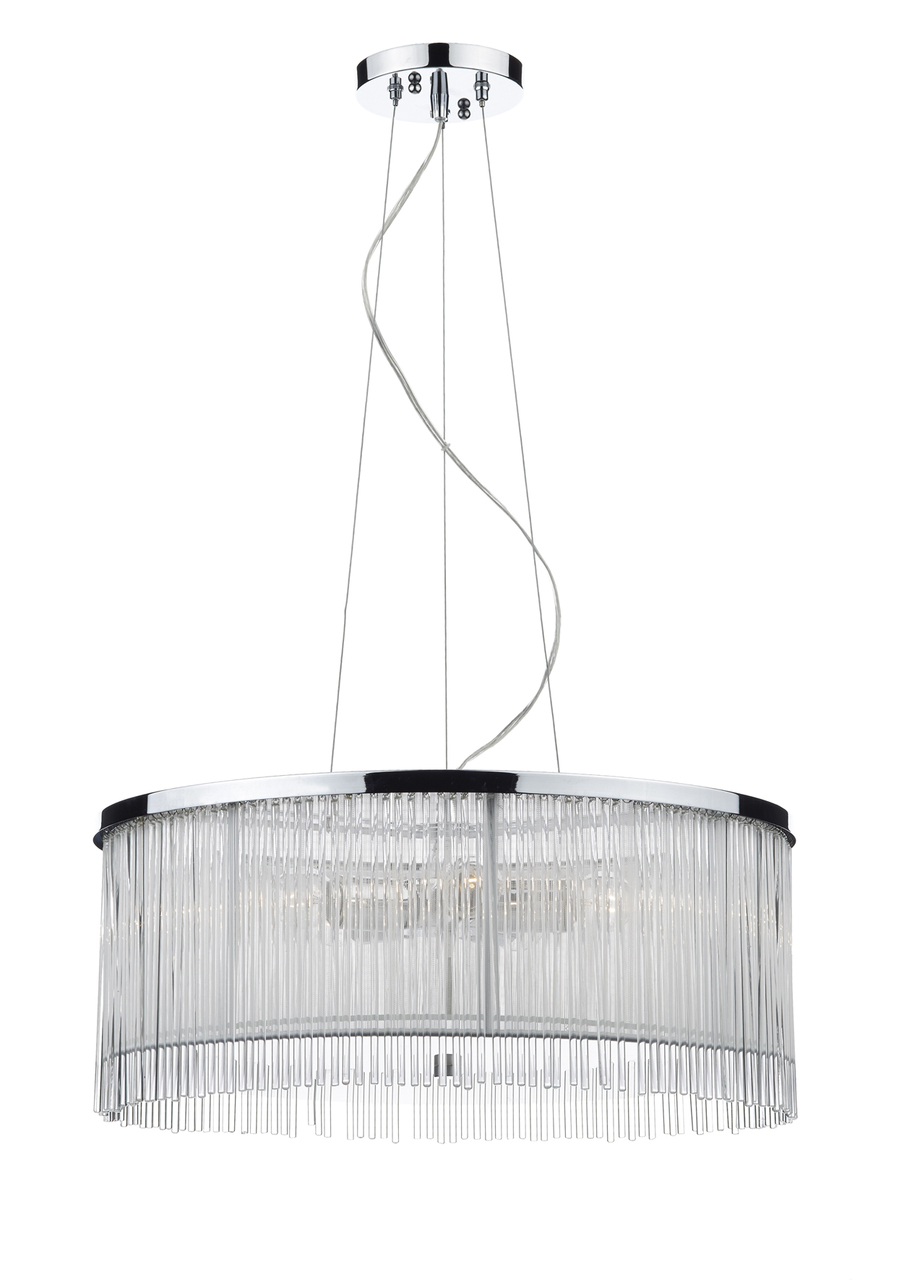 This modern ceiling pendant is finished in polished chrome with clear glass decoration with inner white string shade.