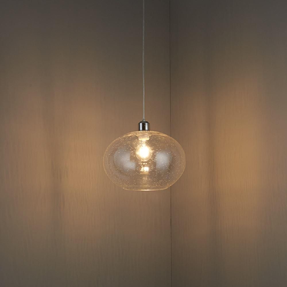 A simple clear glass shade with a bubble effect to the glass.