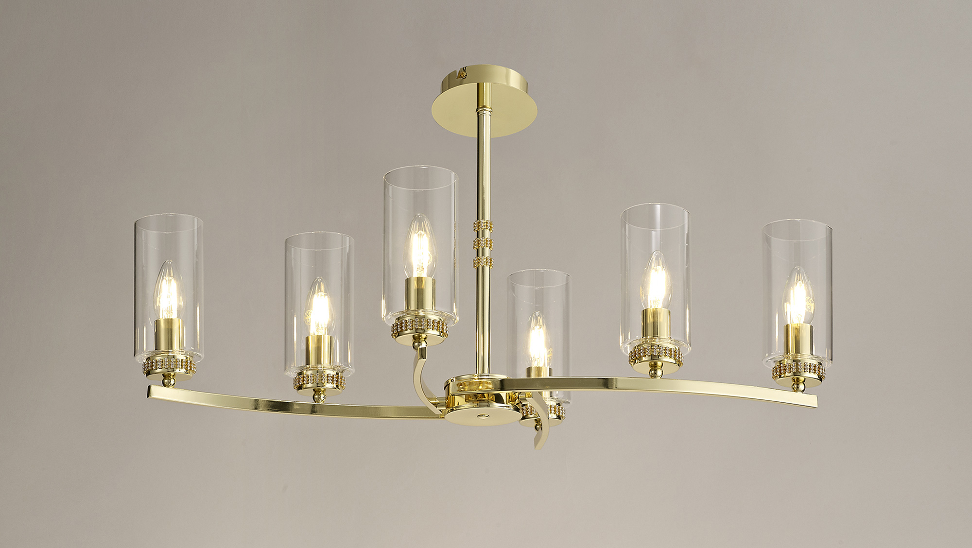 A beautiful range with Polished Gold frame and clear glass tubes with crystal detail.