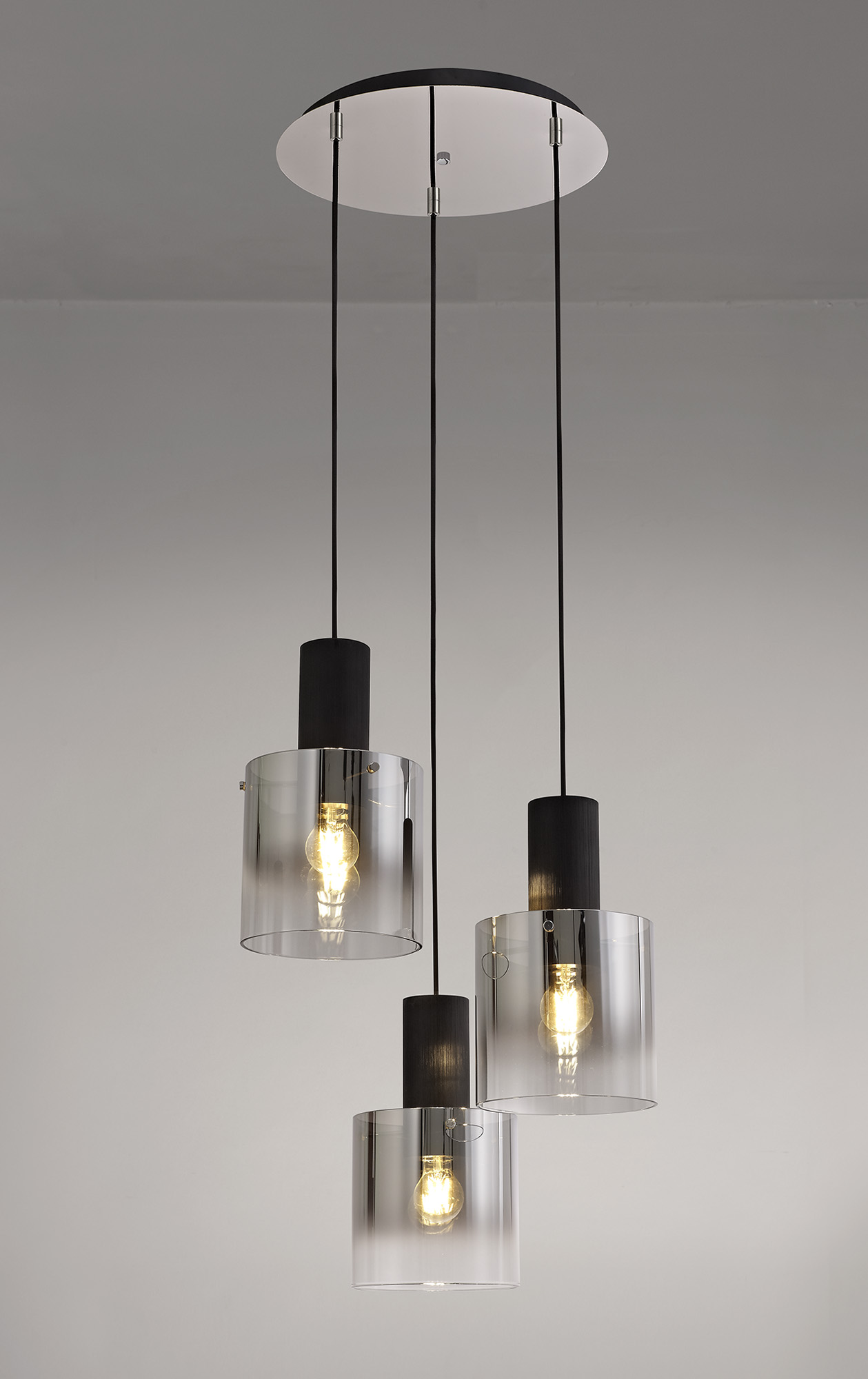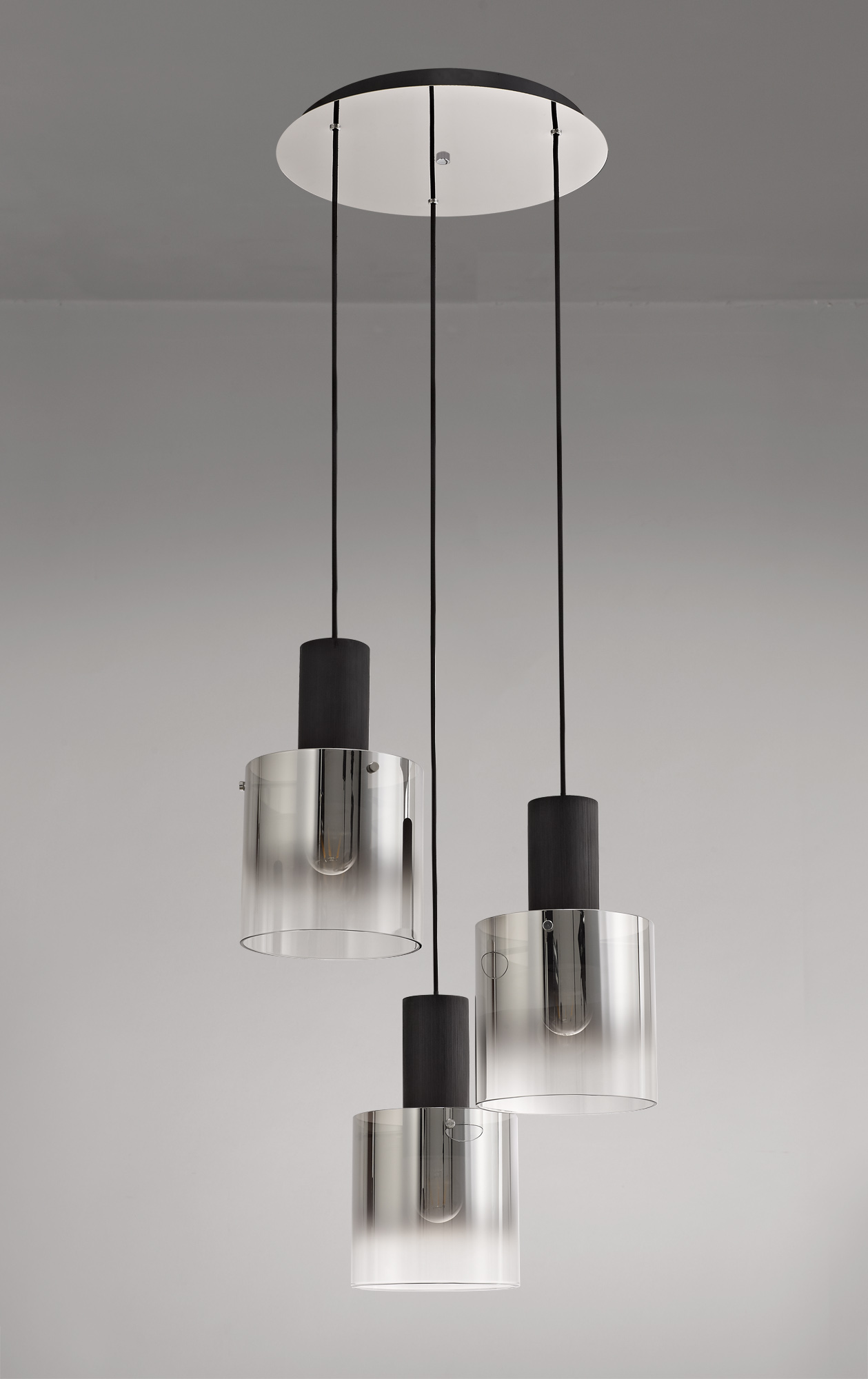 In keeping with our reputation for uncommon stand out designs, Blake capitalises on the intriguing ombré effect by applying the finish to substantial smoked to black glass cylinders which sit around the E27 lampholders. Due to the initial overwhelming success this range has been expanded and the feature has been used to manufacture a wider range of ceiling lights, pendants and complementing wall and table lamp now