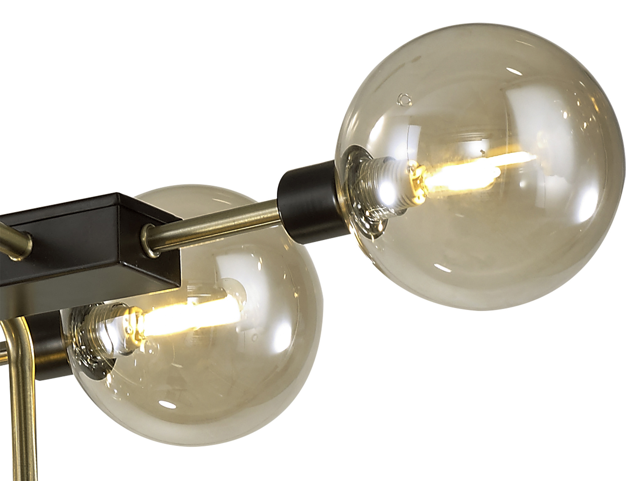 A truly imaginative concept, the Delta range sees the central matt black frames as hosts to a variety of chaotic antique brass tubes which present an overall imitation of a pipeline system, with cognac round glass shades