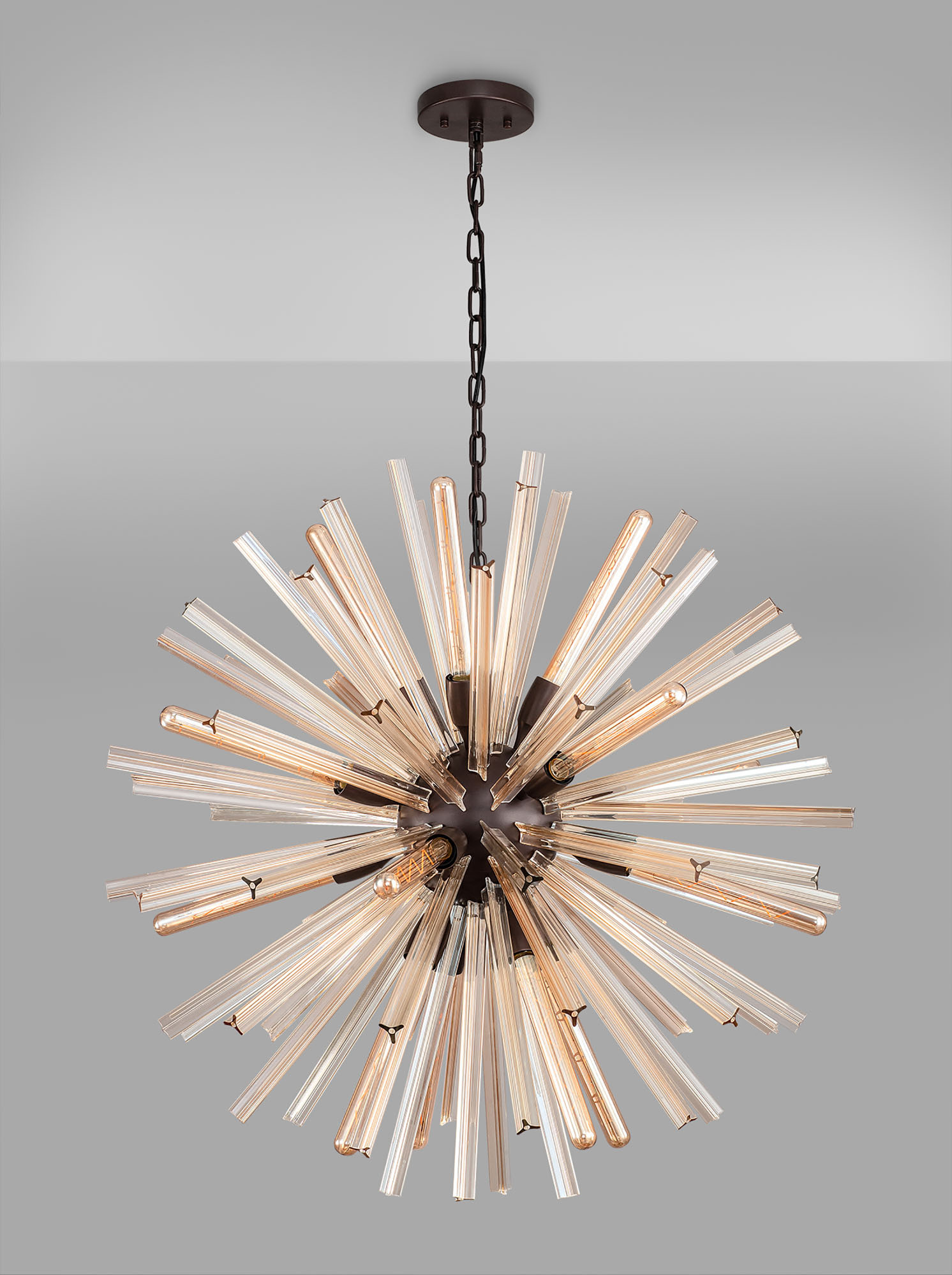 The Cleo collection presents an intriguing glass shape moulded into a three dimensional triquetra. The grooves along each sized glass create an appealing optical effect which is effortlessly enhanced with the use of tubular lamps.