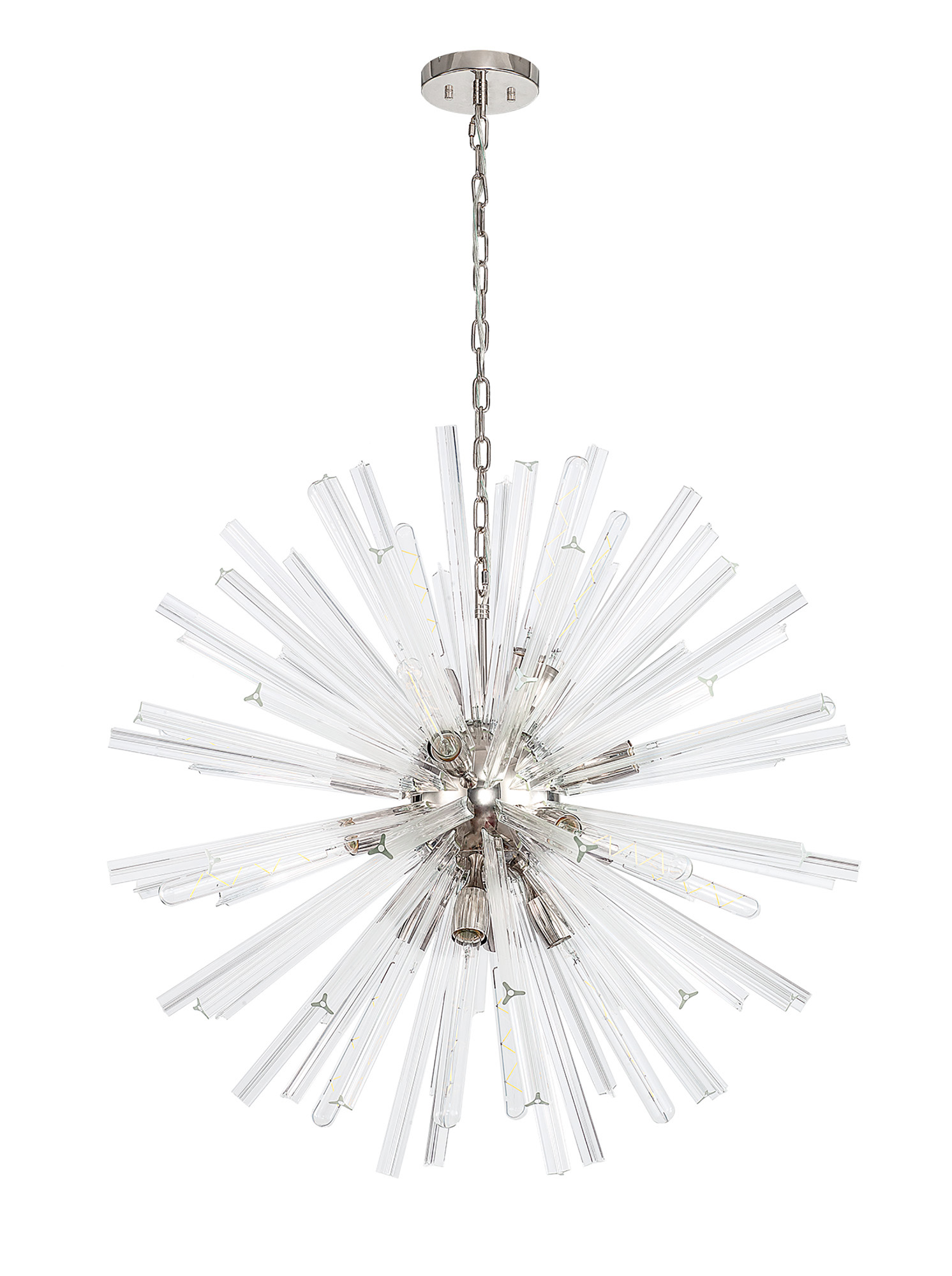 The Cleo collection presents an intriguing glass shape moulded into a three dimensional triquetra. The grooves along each sized glass create an appealing optical effect which is effortlessly enhanced with the use of tubular lamps.