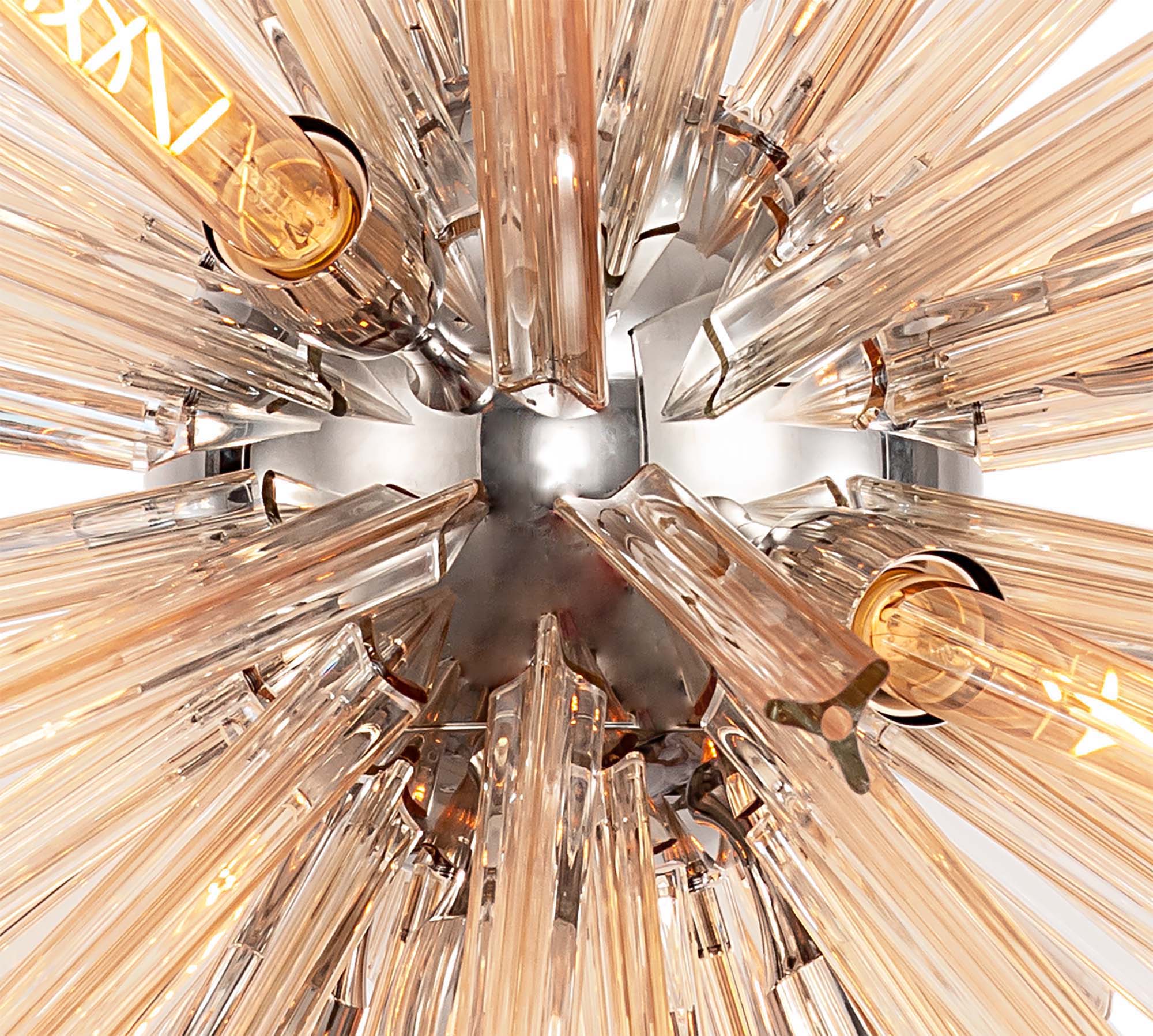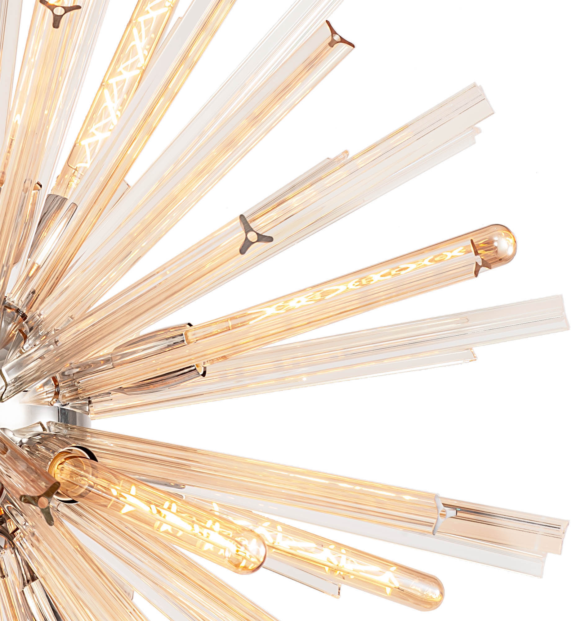 The Cleo collection presents an intriguing glass shape moulded into a three dimensional triquetra. The grooves along each sized glass create an appealing optical effect which is effortlessly enhanced with the use of tubular lamps.