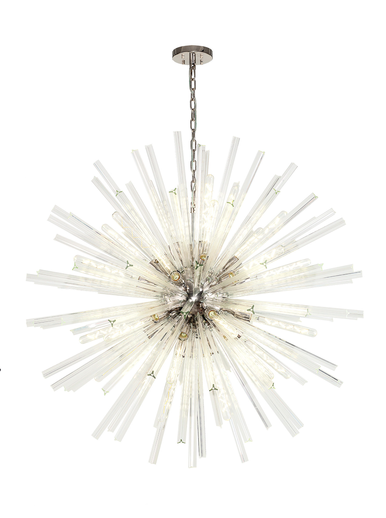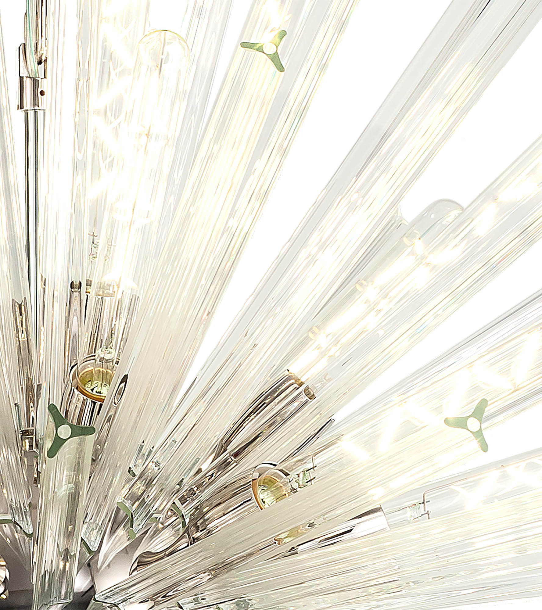 The Cleo collection presents an intriguing glass shape moulded into a three dimensional triquetra. The grooves along each sized glass create an appealing optical effect which is effortlessly enhanced with the use of tubular lamps.
