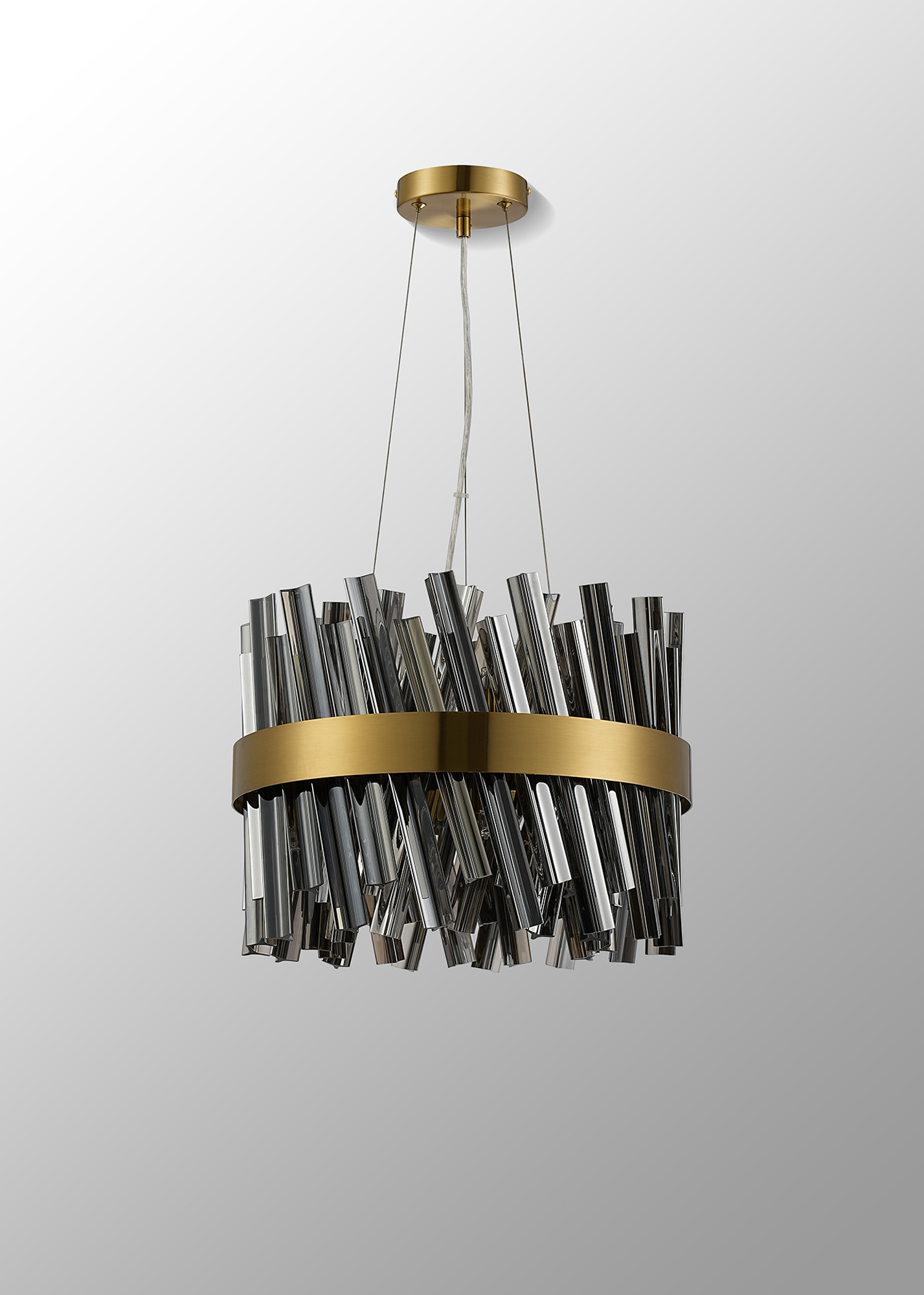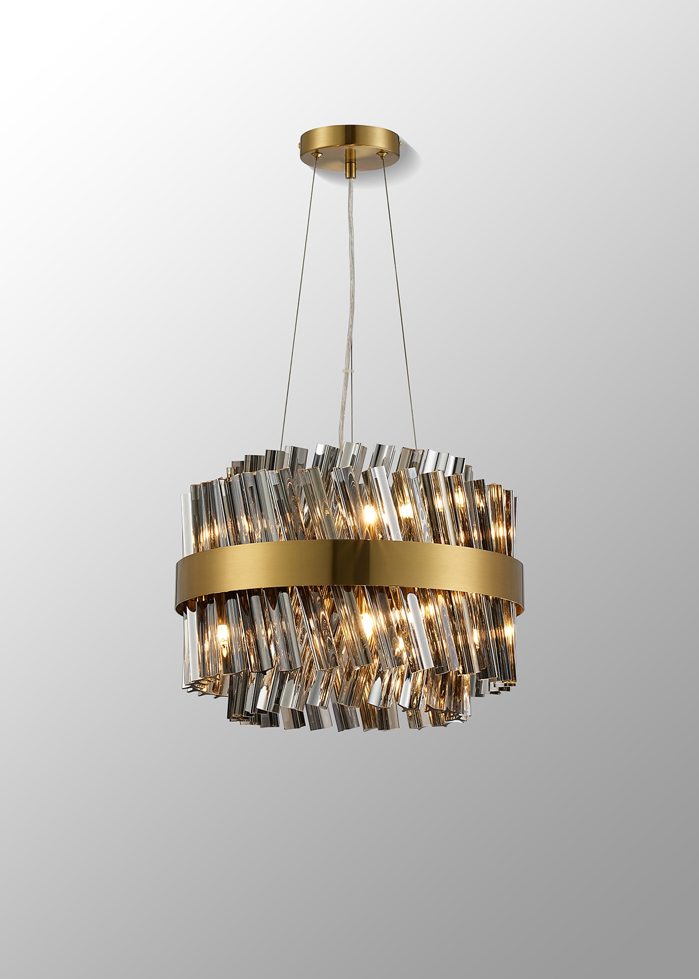 4002563 Cali 10 Light Pendant Brass with Smoked Glass