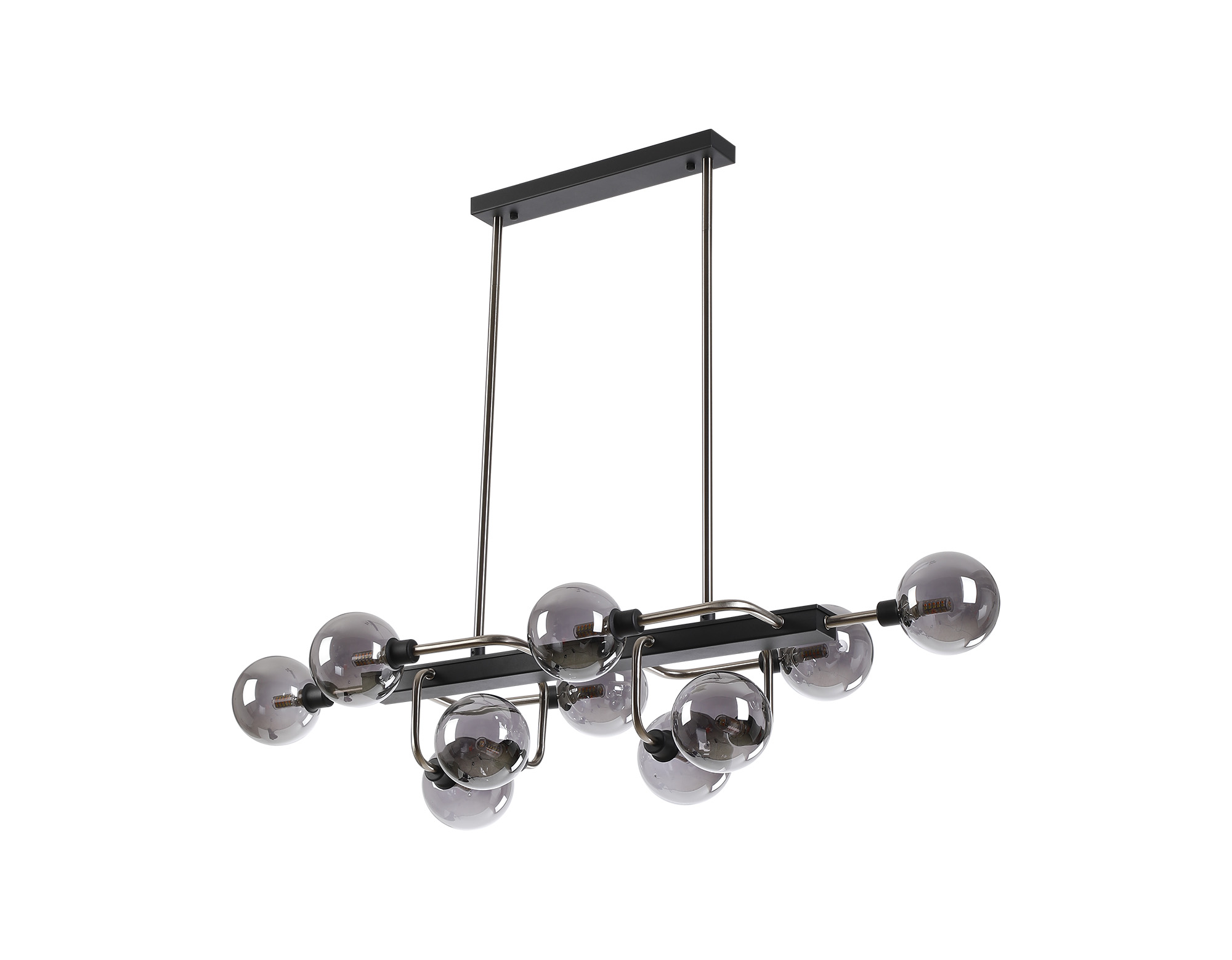 A modern pendant bar light, finished in graphite with satin nickel tubes & smoked glass shades