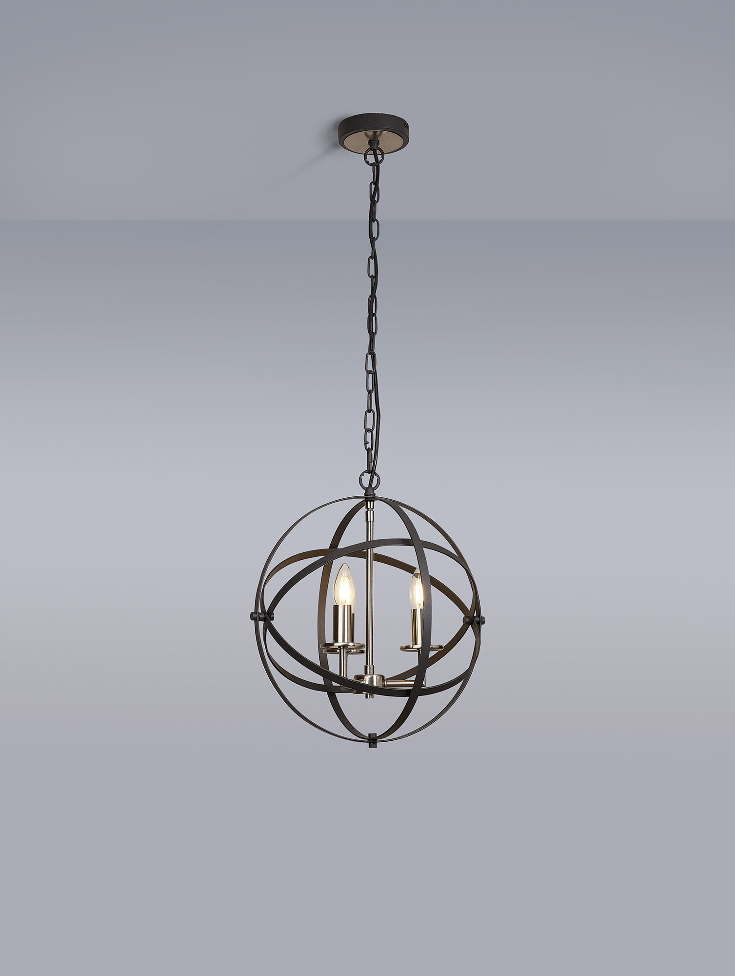 Modern style orb pendant finish in black rings with 3 light gold pendant