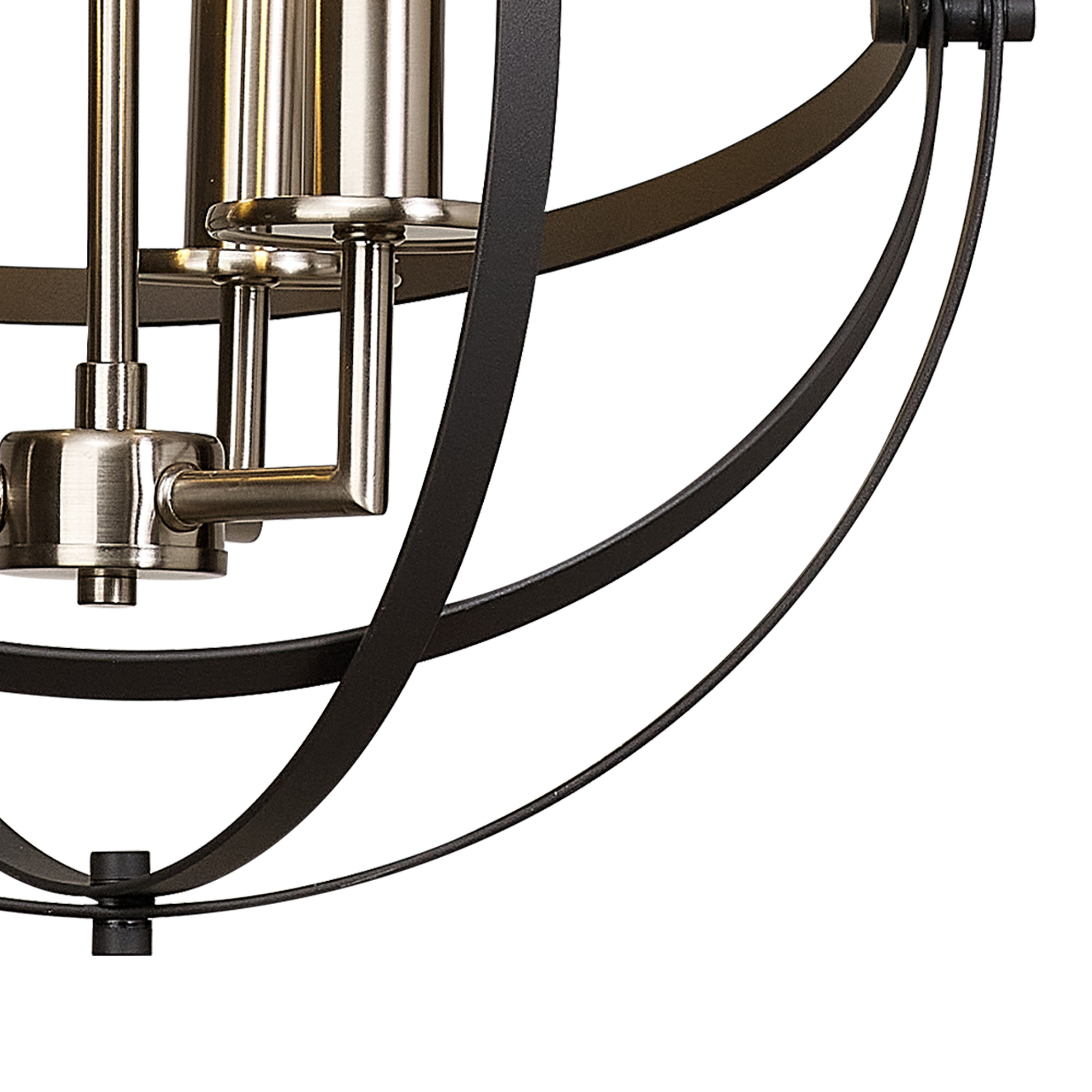 Modern style orb pendant finish in anthracite rings with 3 light satin nickel pendant