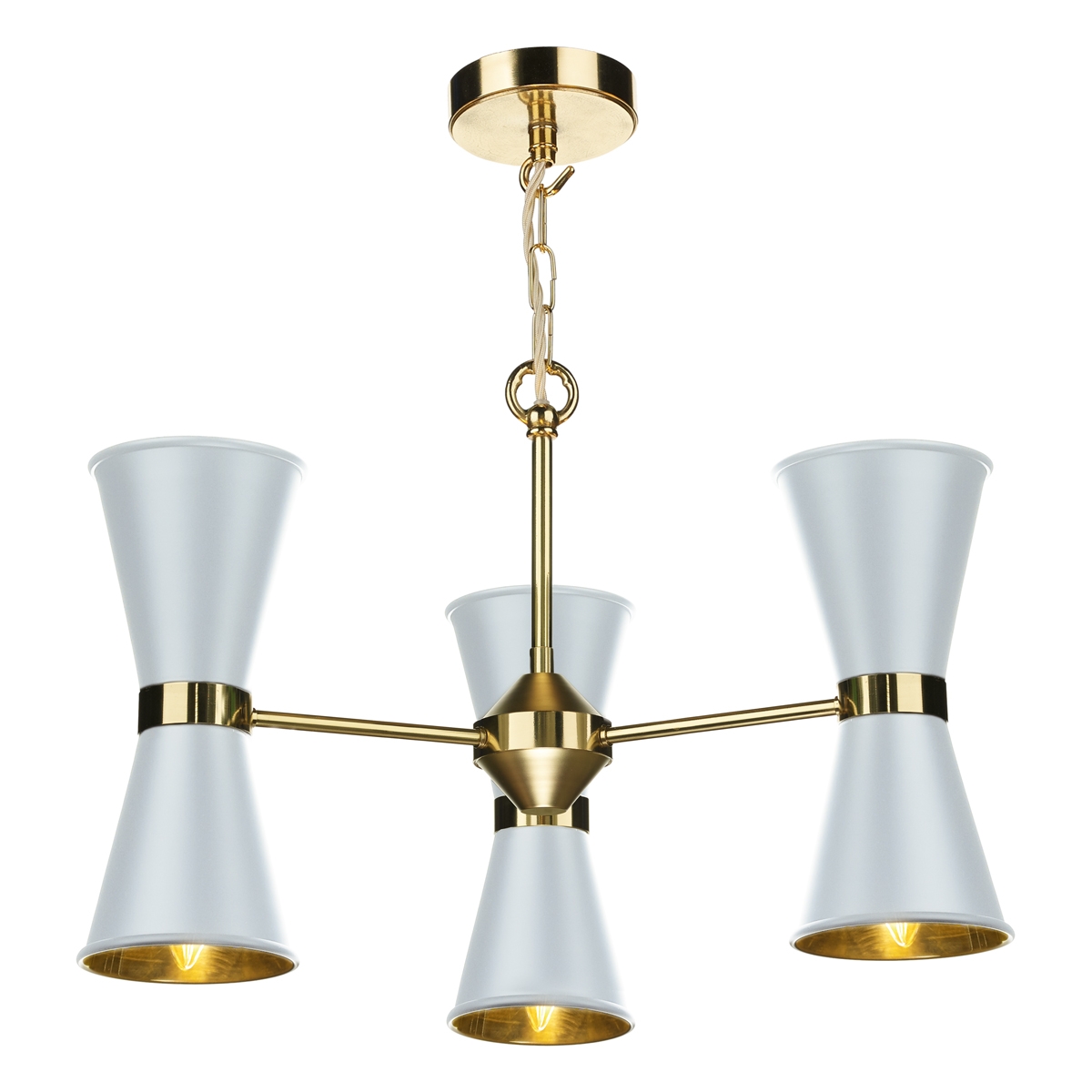 David Hunt HYD0602 6 Light Pendant in Brass with White Metal Shade