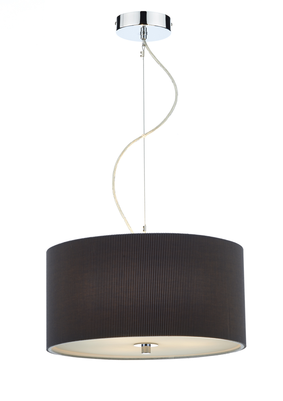 This modern pendant has chrome ceiling rose with pleated grey shade with opal glass diffuser.