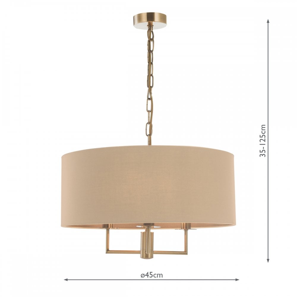 Dar JAM0301 Jamelia 3 Light Chandelier Antique Brass Taupe Shade