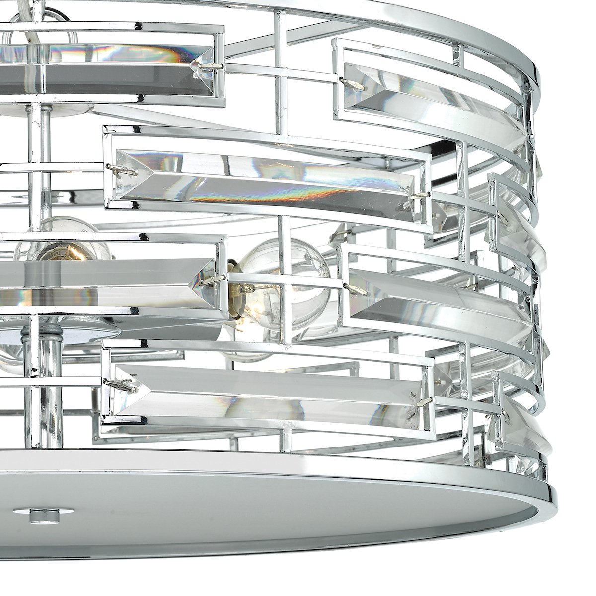 Faceted crystal panels with polished chrome frame work with a tempered white opal glass diffuser