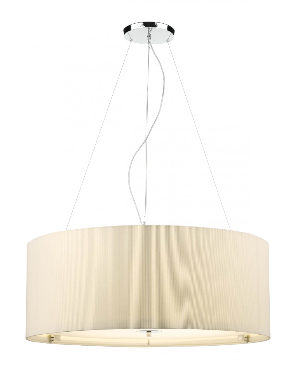 Corrugated cream shade with a glass diffuser finsihed off with polished chrome ceiling rose.