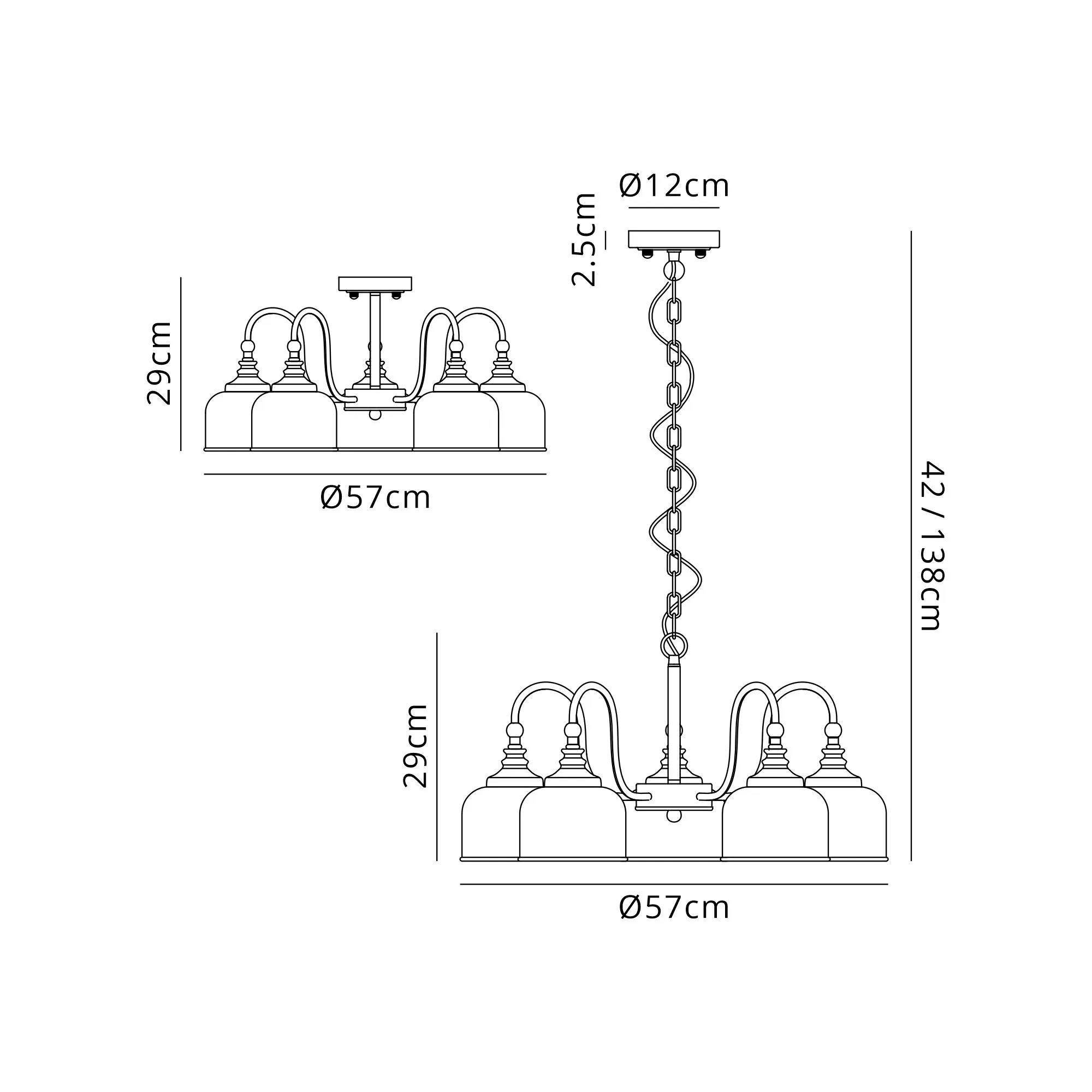 Pendant: min 42cm max 138cm