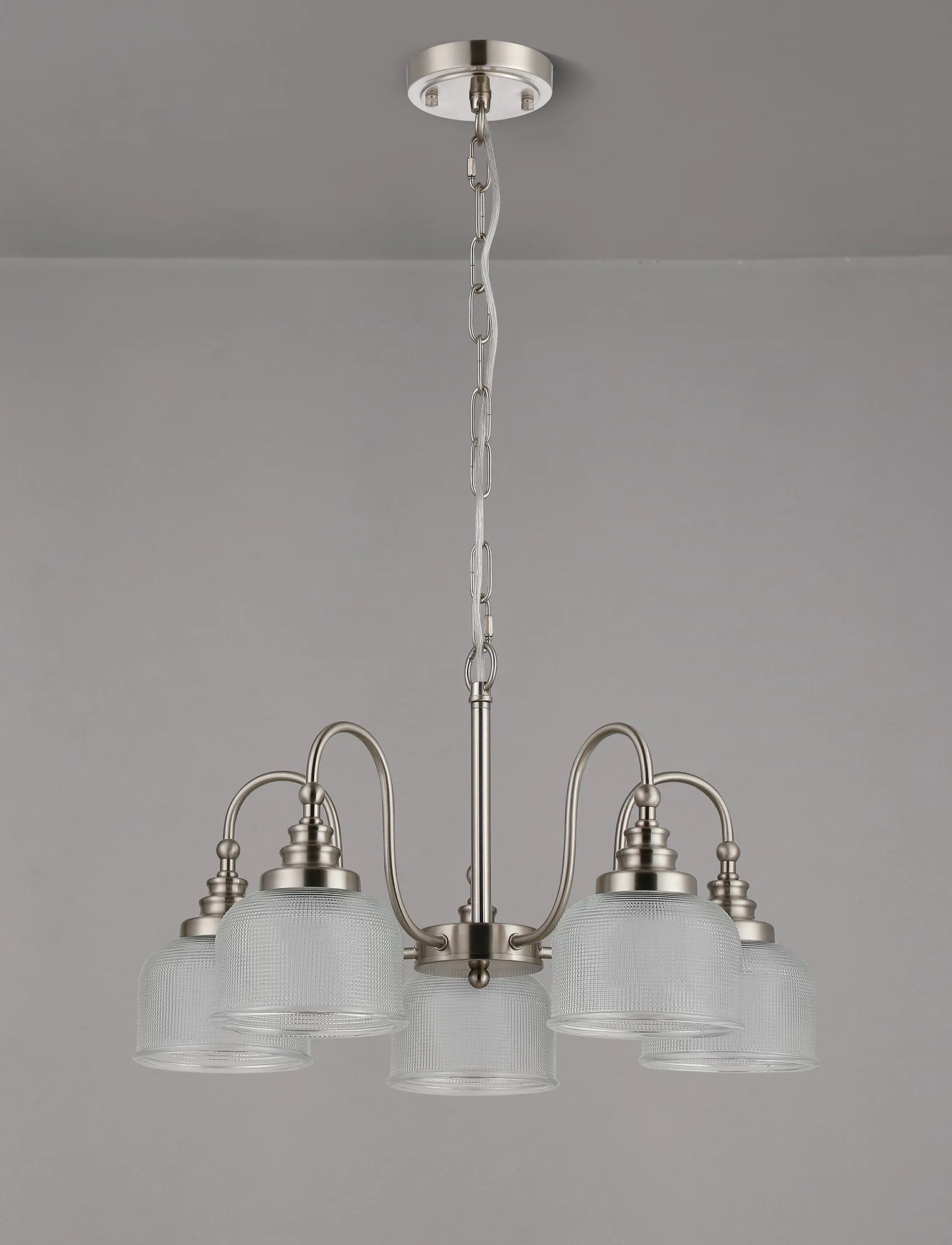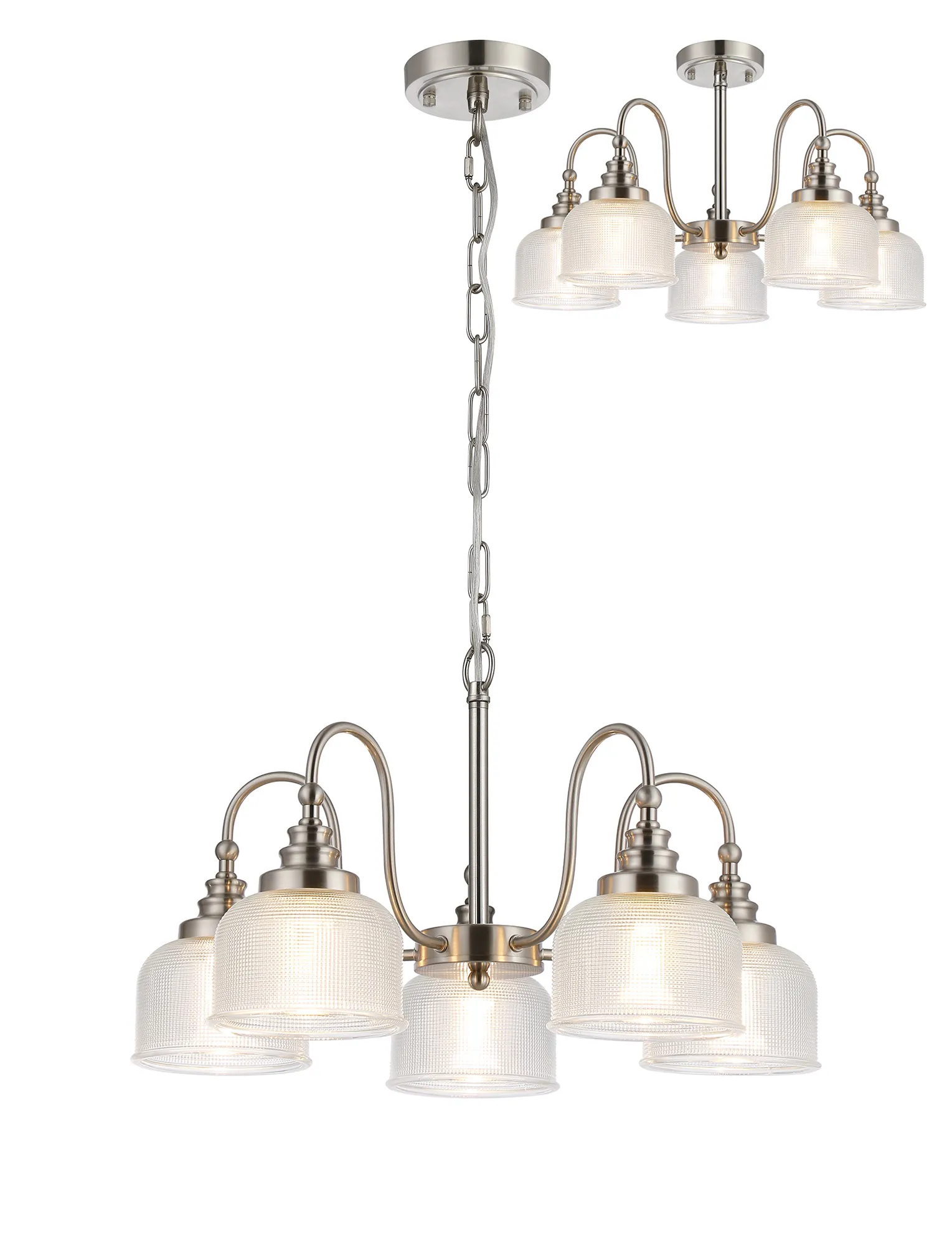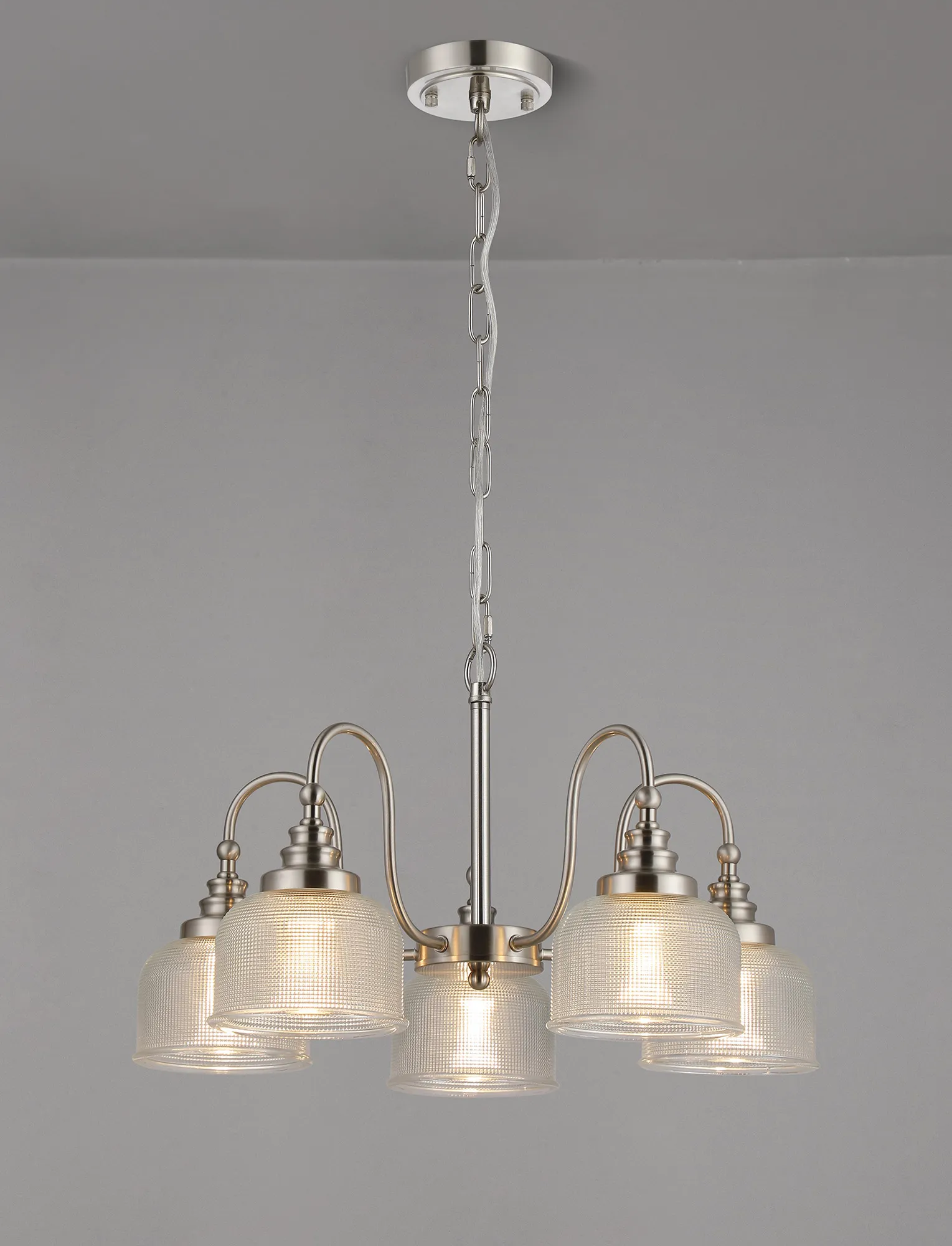 50011475 Sherborne 5 Light Pendant / Semi Flush Satin Nickel Clear Glass