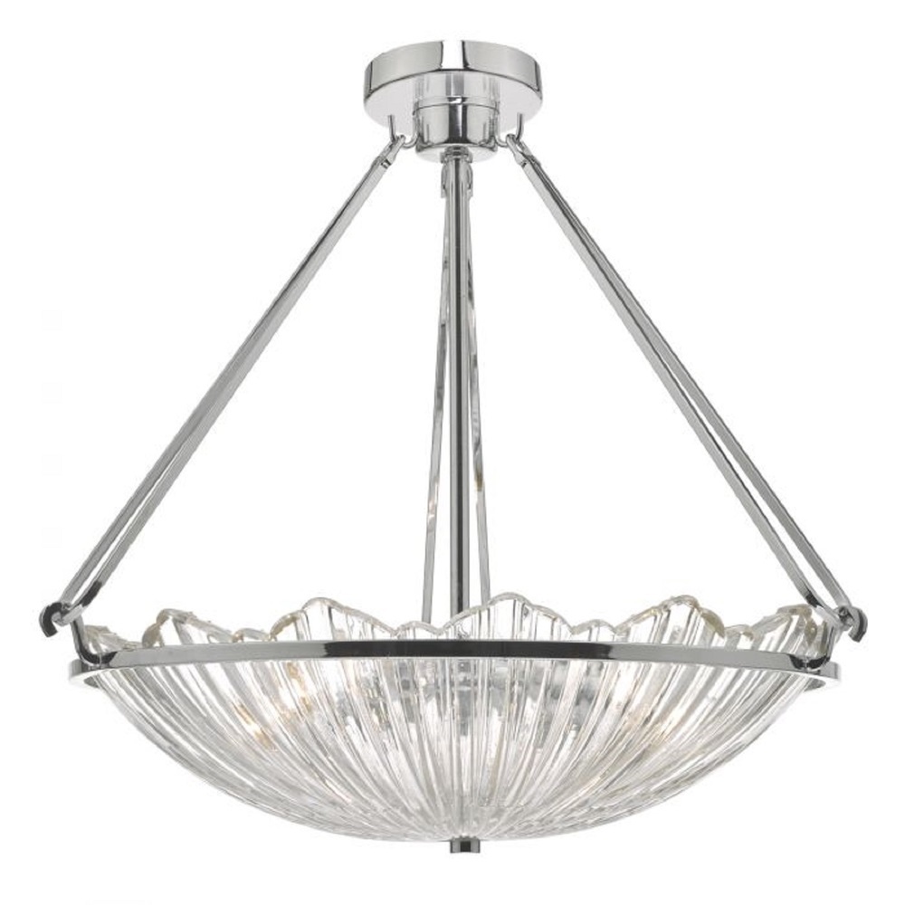 Art Nouveau inspired pendant finished in polished nickel with ribbed curved glass