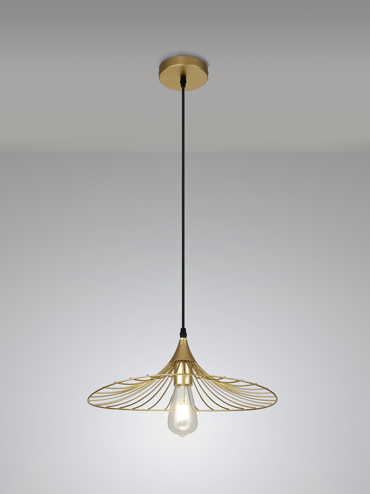3002781 1 Light Shallow Gold Wire Pendant