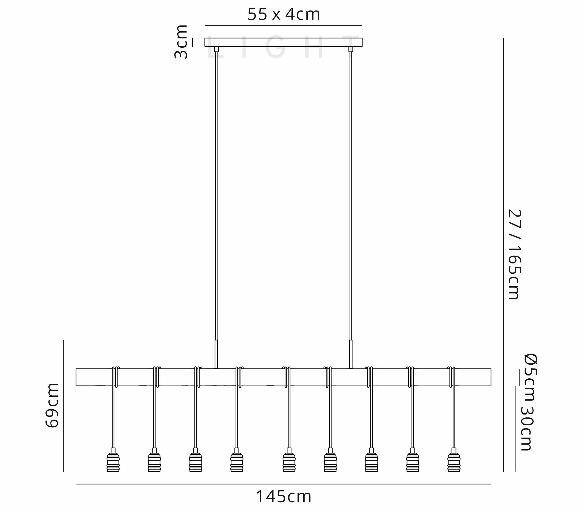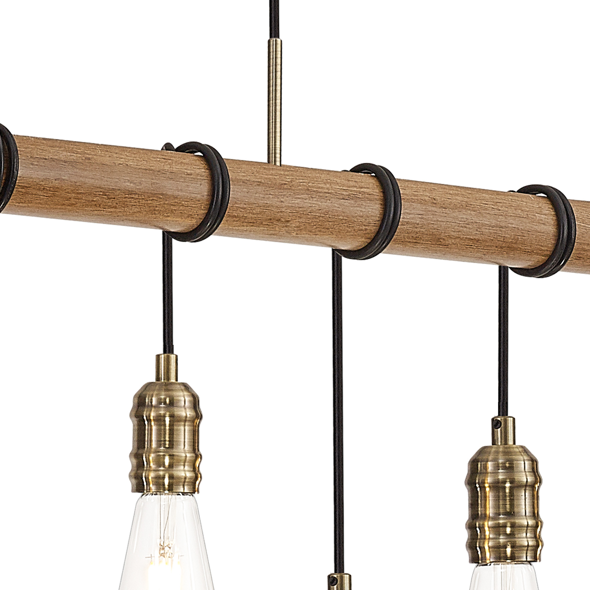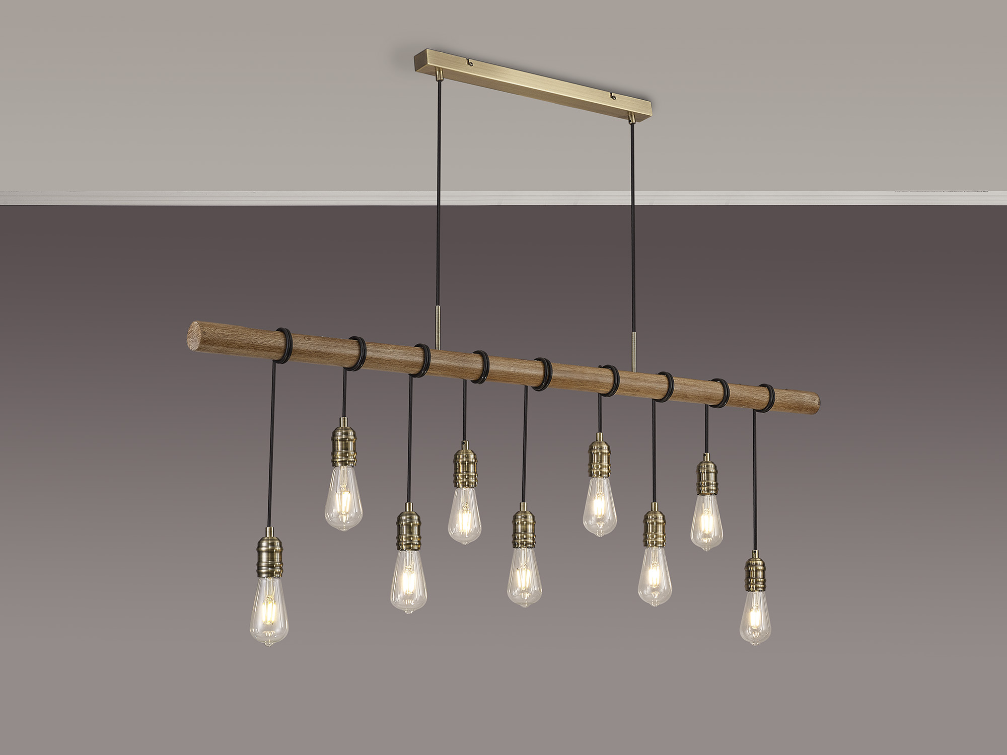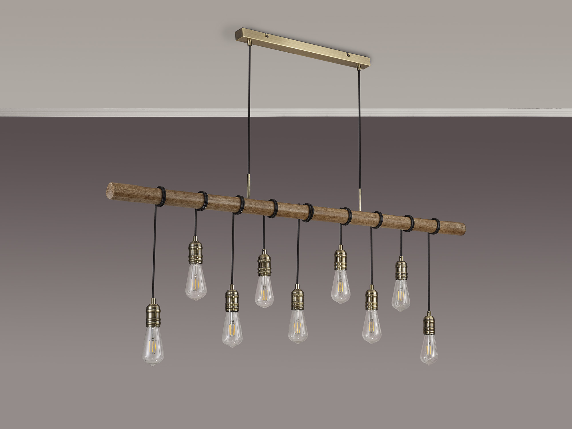 4002801 9 Light Tube Oak/Antique Brass Pendant