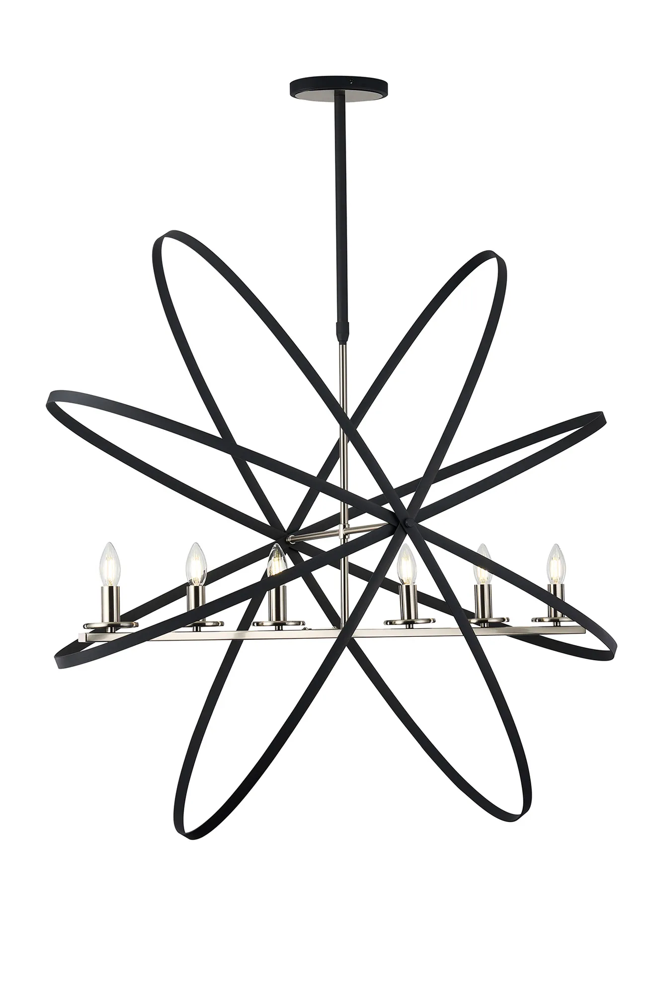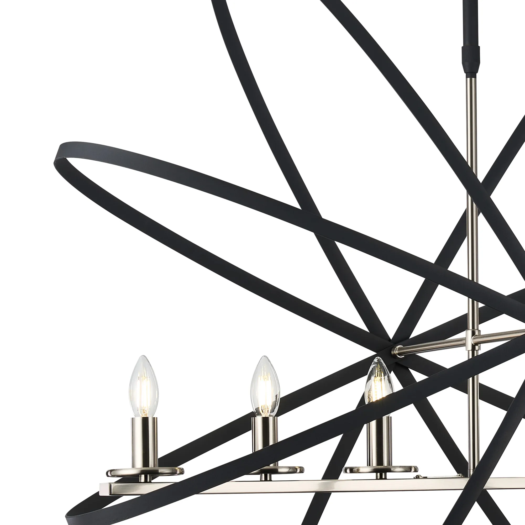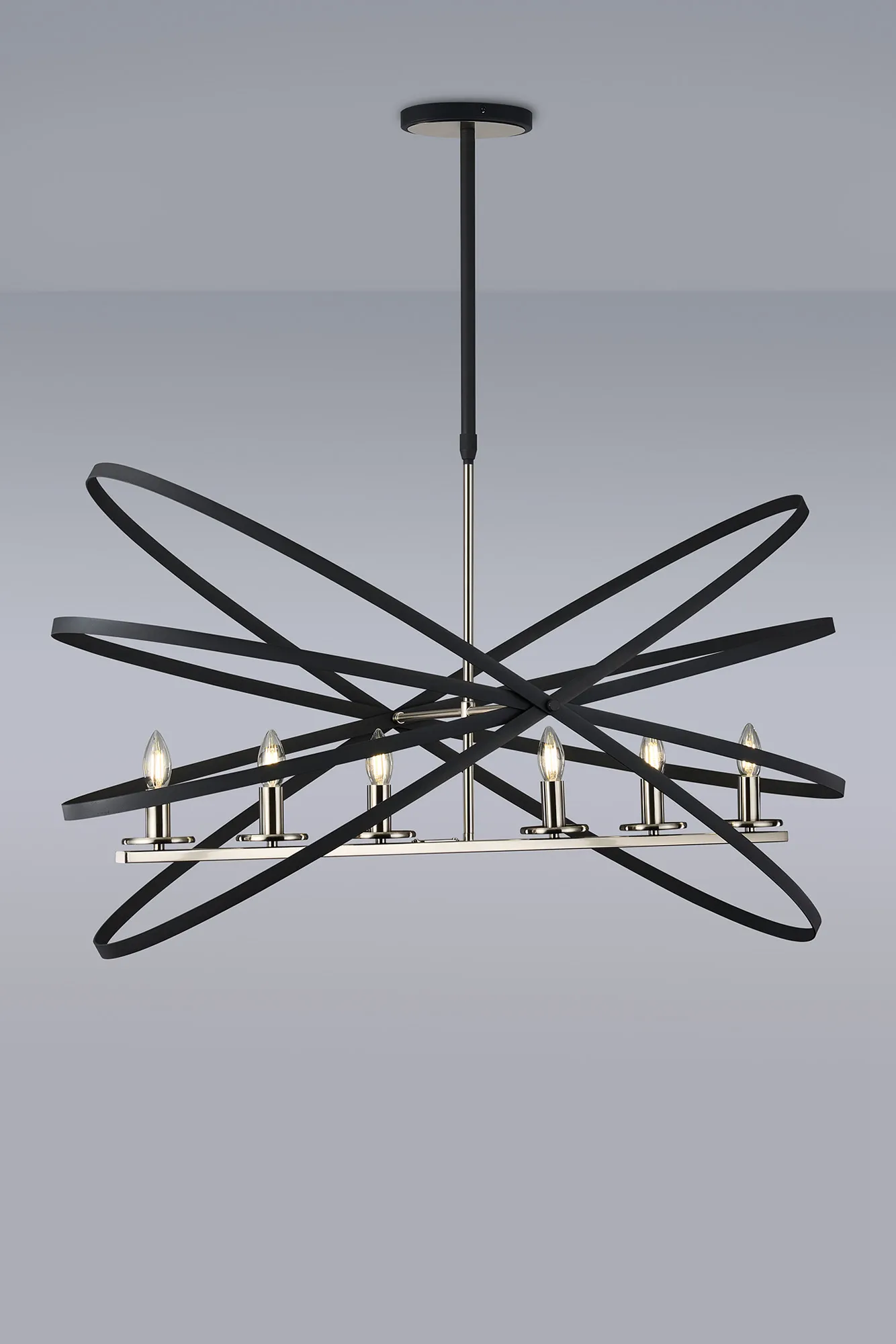 The combination of metallic framework combined with a darker decorative embellishment has proved excessively popular with some of our other ranges. In order to offer more style options within this concept we have now designed the Saturn range. Mimicking astrological rings, the darker metalwork erratically frames the E14 lamp holders of each fitting