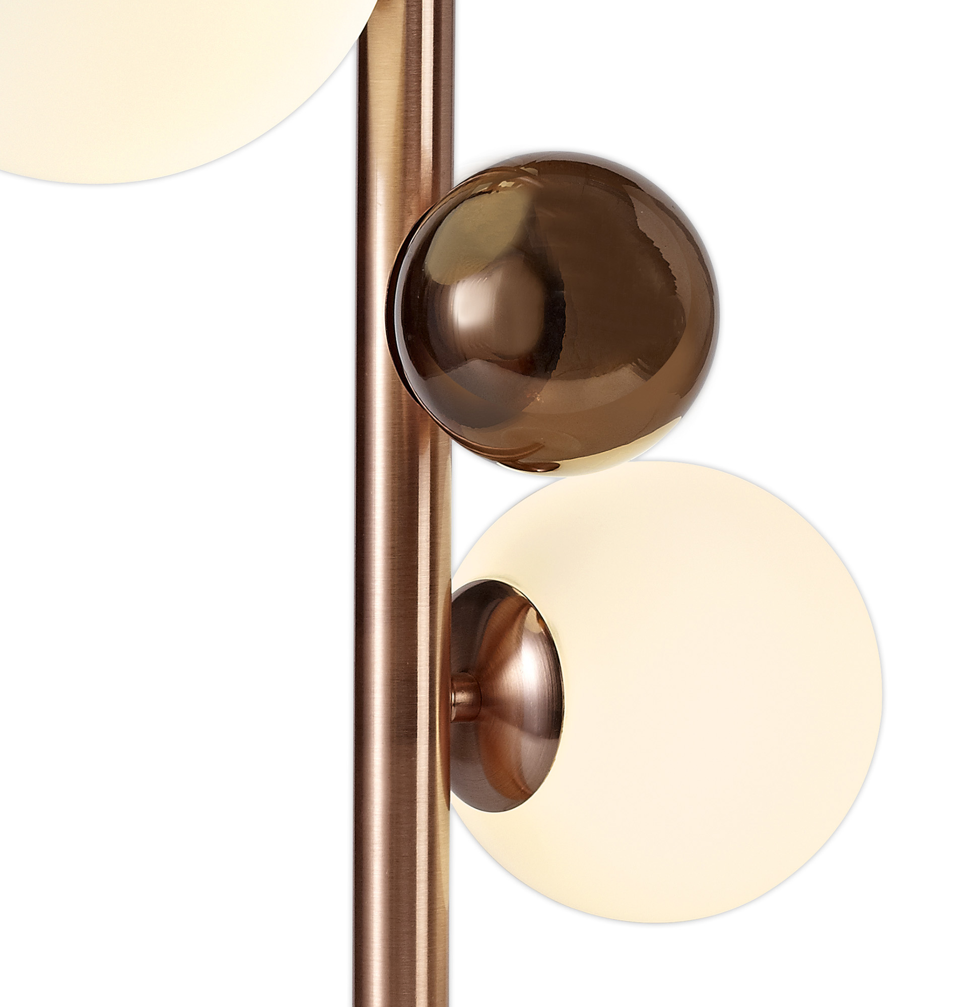 A modern polished chrome framework with Antique Copper & Opal Glass