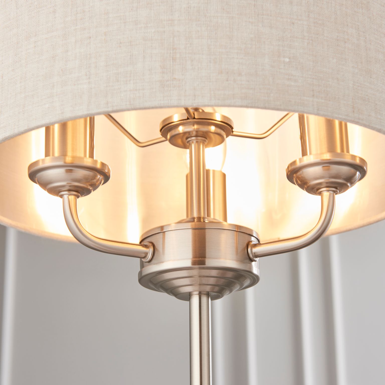 3194369 Claire 3 Light Brushed Chrome Table Lamp With Natural Shade