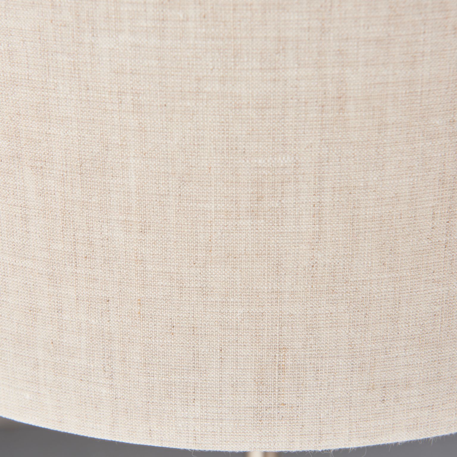 This 3 Light table lamp is a sophisticated combination of natural colour linen mix fabric with reflective metallic inner and brushed chrome plated metalwork.