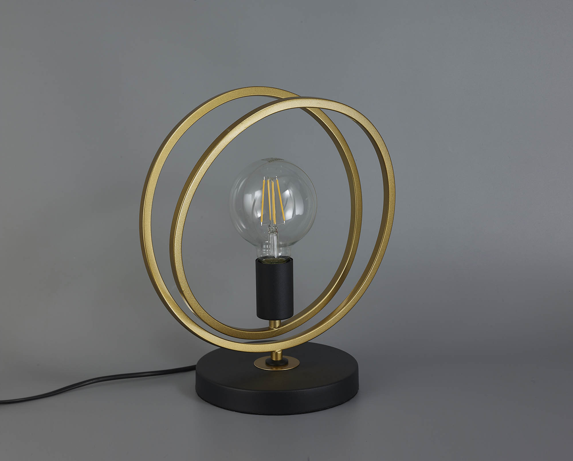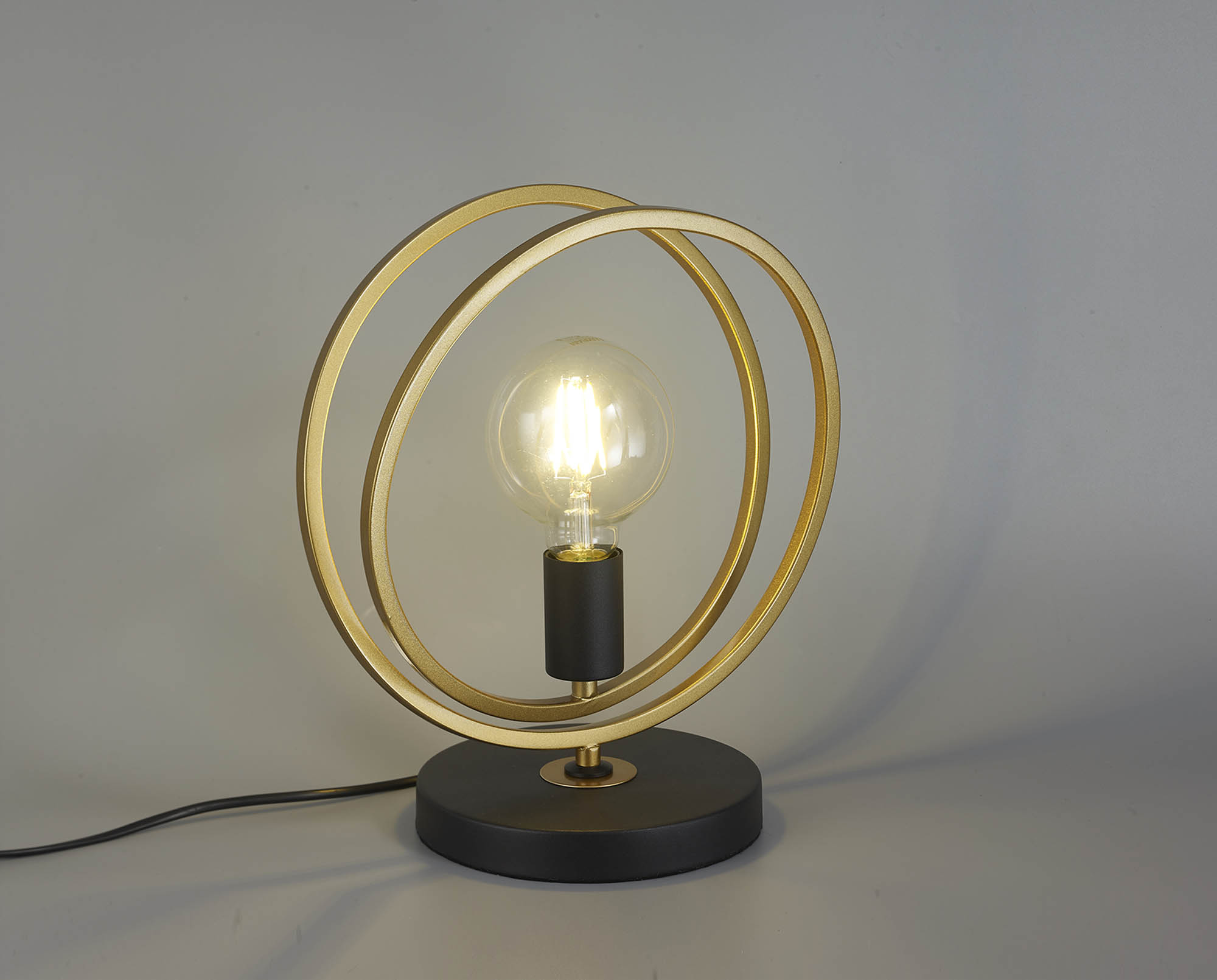 Circle Double Ring Table Lamp 1 Light E27, Matt Black / Painted Gold