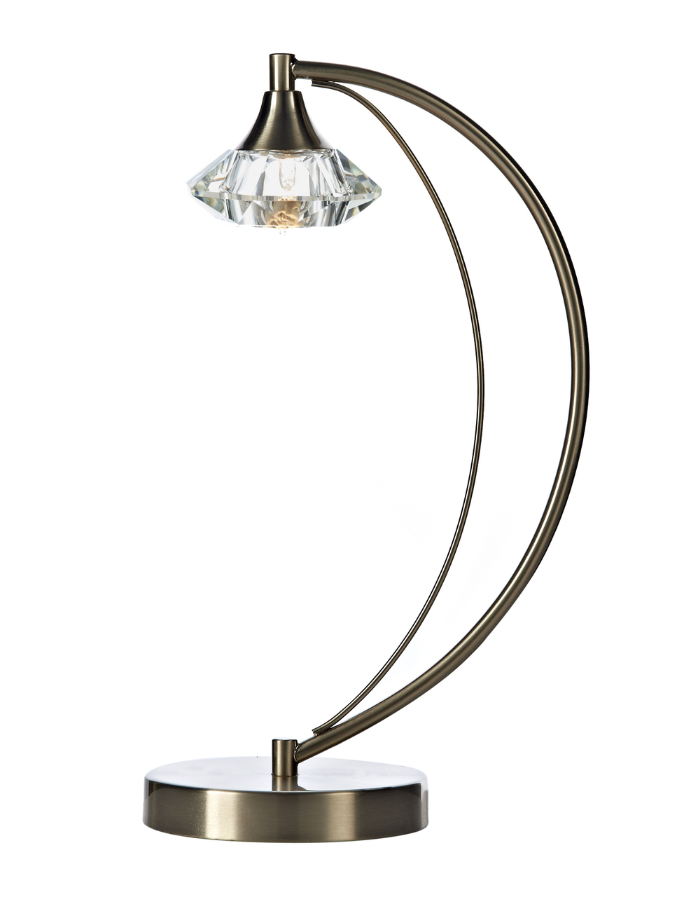 A Modern table lamp finished in satin chrome with crystal designed glass.