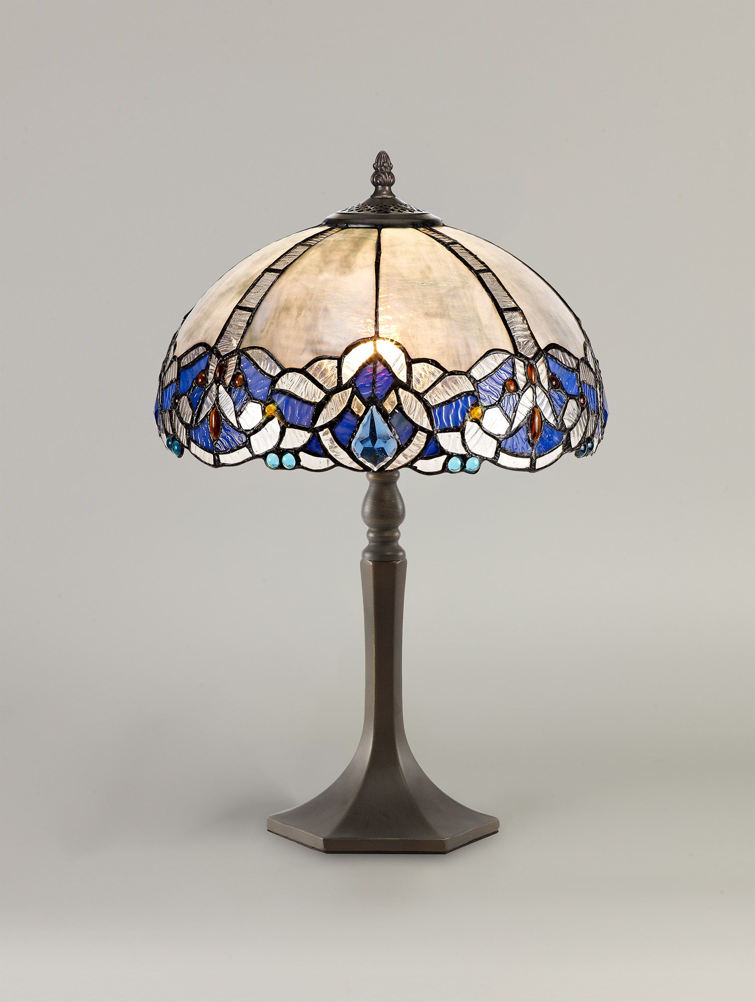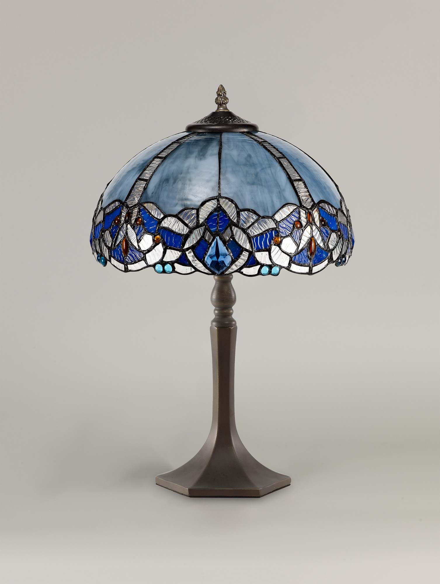 005145 Tiffany Table Lamp Blue/Crystal Glass